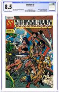 Newsstand Edition. The Man Who Created Villains! - Written by Bob Rozakis (plot) and E. Nelson Bridwell (script). Art by Irv Novick and Frank McLaughlin. Cover by Ross Andru and Dick Giordano. Perry White sends Clark and Jimmy to the town of Fairfax to investigate the great number of heroes that have been appearing there, so they meet Chris and Vicki and become involved in their ongoing battle with the Master and his villains. Characters in this issue: Vicki Grant (as Sphera; as Blazerina; as Thundera); Chris King (as Beast-Maniac; as Prism; as Essence); Jimmy Olsen; Superman [Clark Kent]; Perry White; The Nullifier (villain); The Master (villain). (Note: Heroes and villains suggested by readers: Ricky Bakletta (Beast-Maniac), David Brown (Sphera), Nicky Alvarez (The Nullifier), Jay Dickson (Prism), Davey Crowe (Blazerina), Brad Bechtel (Essence), Lannie Hood (Thundera).) 32 pages, full color. Cover price $0.60.