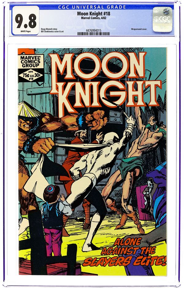 "The Slayer's Elite!" Written by Doug Moench, with art by Bill Sienkiewicz and Steve Mitchell. Cover by Bill Sienkiewicz. Moon Knight is in Jerusalem preparing to take on Nimrod Strange and his army of anarchists, but Nimrod gets the jump on him and sends a trio of deadly assassins to finish him off. 32 pages, FC. Cover price $0.75.