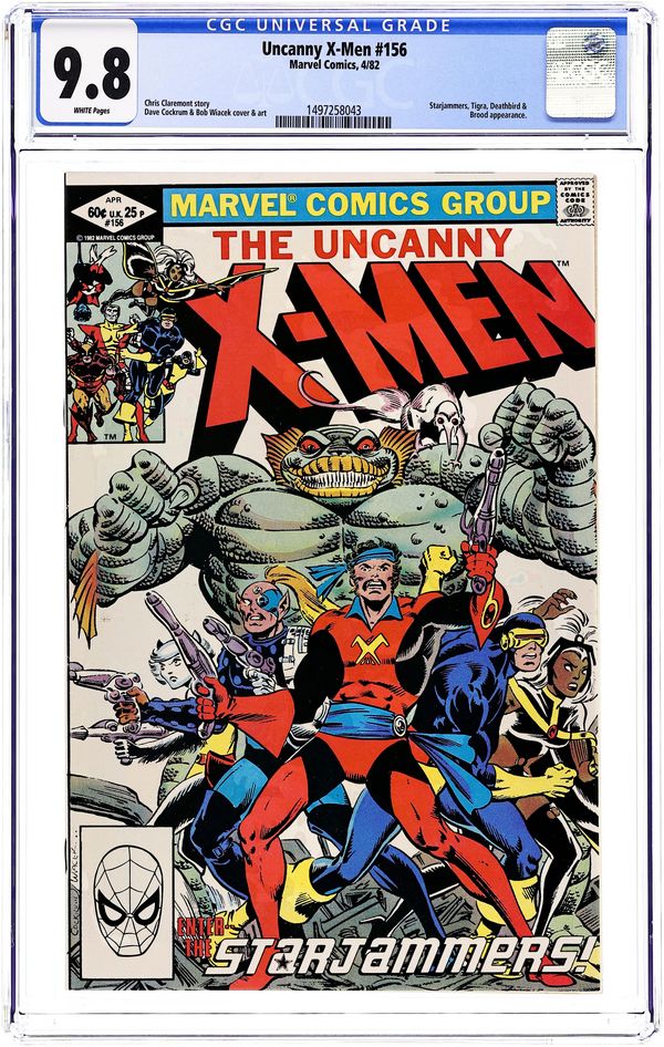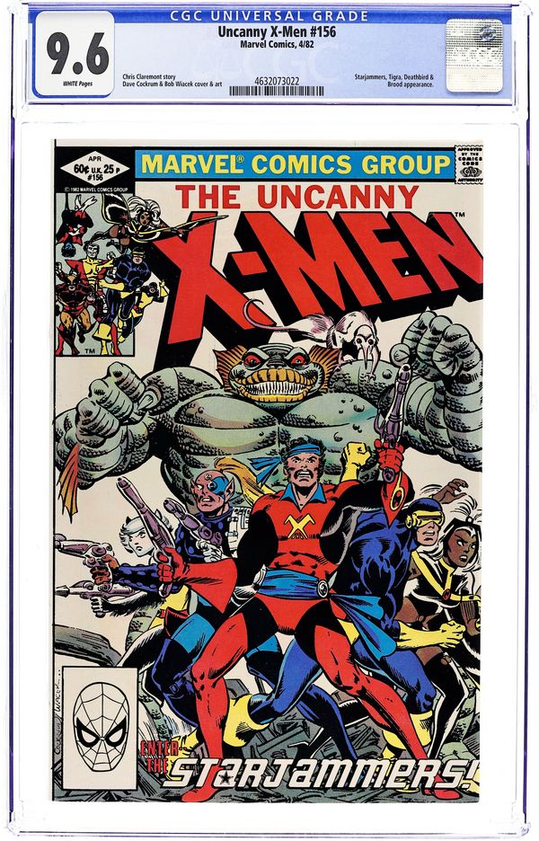 Direct Edition. "Pursuit!" Part 3 of 4. Guest-starring the Starjammers and Tigra. Story by Chris Claremont. Art by Dave Cockrum and Bob Wiacek. The Professor has been taken captive, Colossus has been mortally wounded, and the Earth is running out of time. The hard-luck heroes the X-Men team-up with the space-pirates the Starjammers to pursue their adversaries - the Shi'ar renegade Deathbird and the sinister Brood - to the far reaches of the space itself. Plus, the origin of Cyclops' father, Corsair, is revealed. 36 pgs. Cover price $0.60.