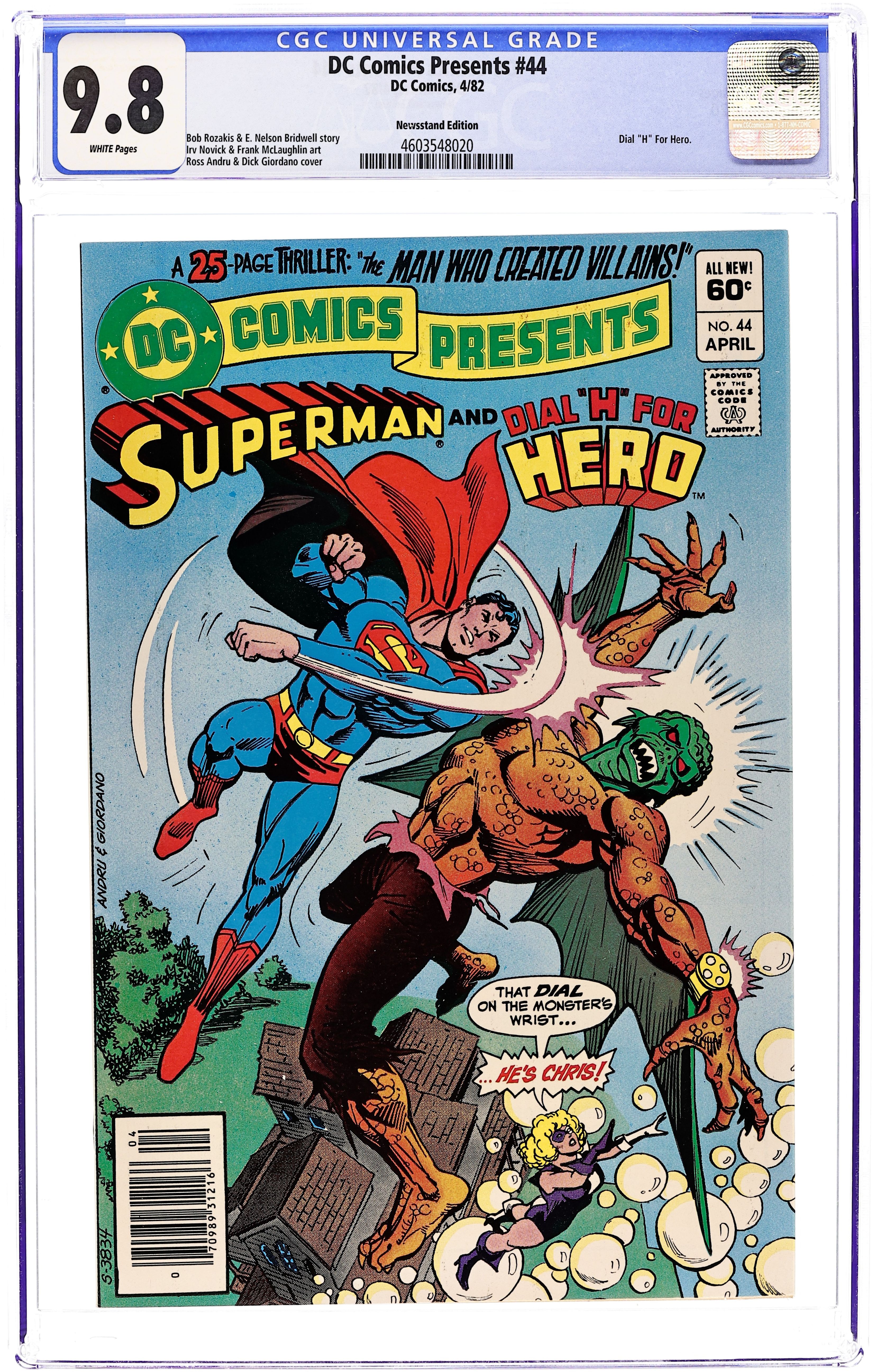 Mark Jeweler Advertisement Insert Variant. Script by Bob Rozakis & E. Nelson Bidwell and art by Irv Novick & Frank McLaughlin. When Clark Kent is sent to investigate the appearance of many super heroes in the town of Fairfax, Superman and the Dial "H" for Hero team face "The Man Who Created Villains." Cover price $0.60.