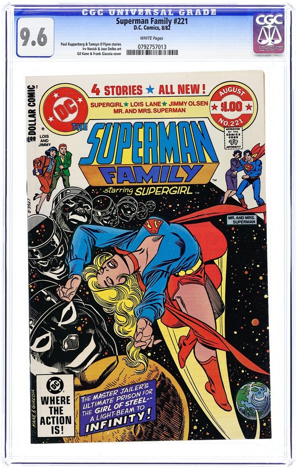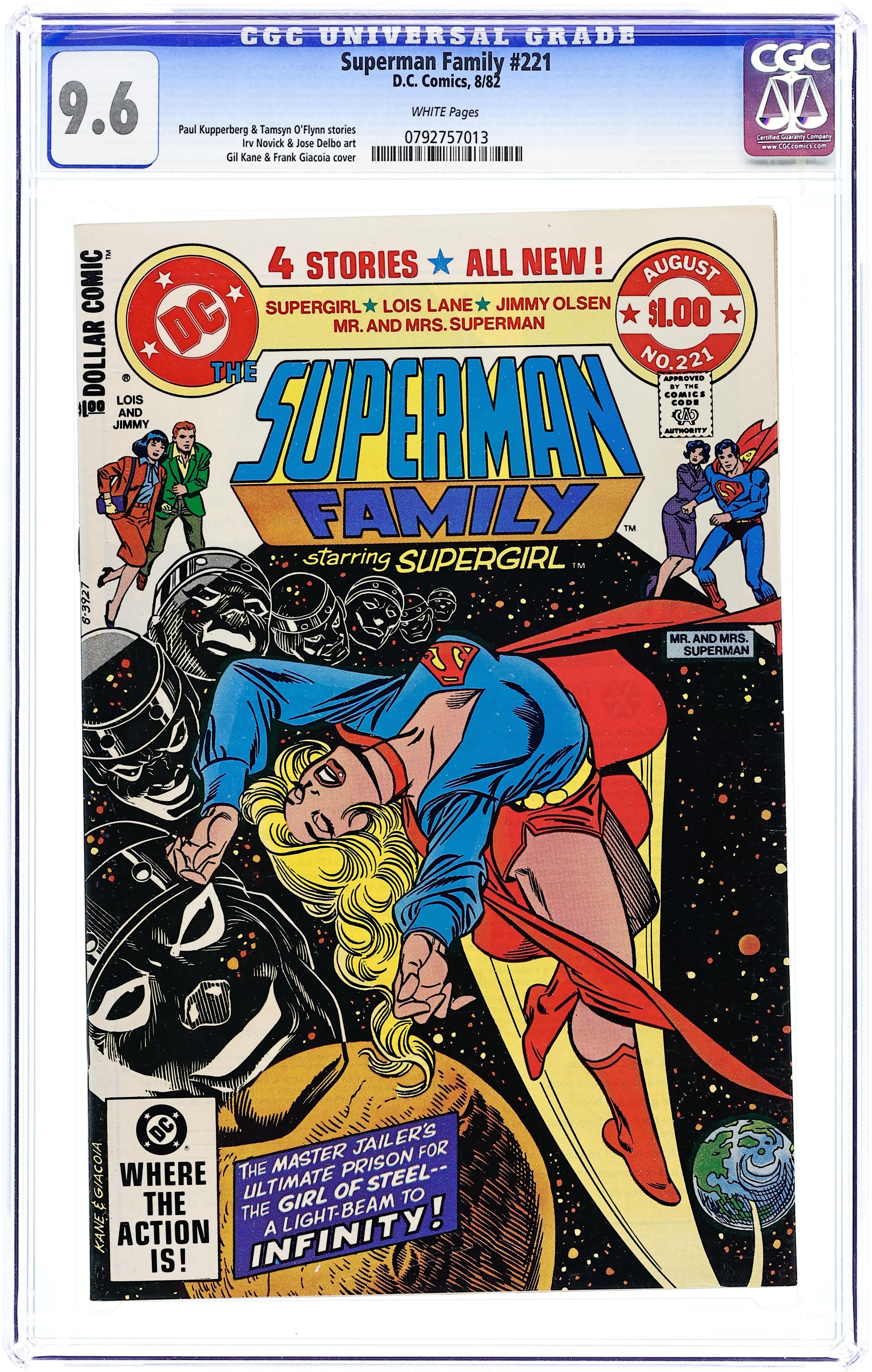 Direct Edition. Cover pencils by Gil Kane, inks by Frank Giacoia. A Trip on the Light Fantastic starring Supergirl, script by Paul Kupperberg, pencils by Win Mortimer, inks by Sal Trapani. Clark Kent Is Superman starring Jimmy Olsen, script by Paul Kupperberg, pencils by Jose Delbo, inks by Joe Giella. Fear for Sale starring Lois Lane, script by Tamsyn O'Flynn, pencils by Bob Oksner, inks by Vince Colletta. Arrows of Vengeance--Mr & Mrs Superman, script by E. Nelson Bridwell, pencils by Irv Novick, inks by John Calnan. 52 pgs. $1.00. Cover price $1.00.