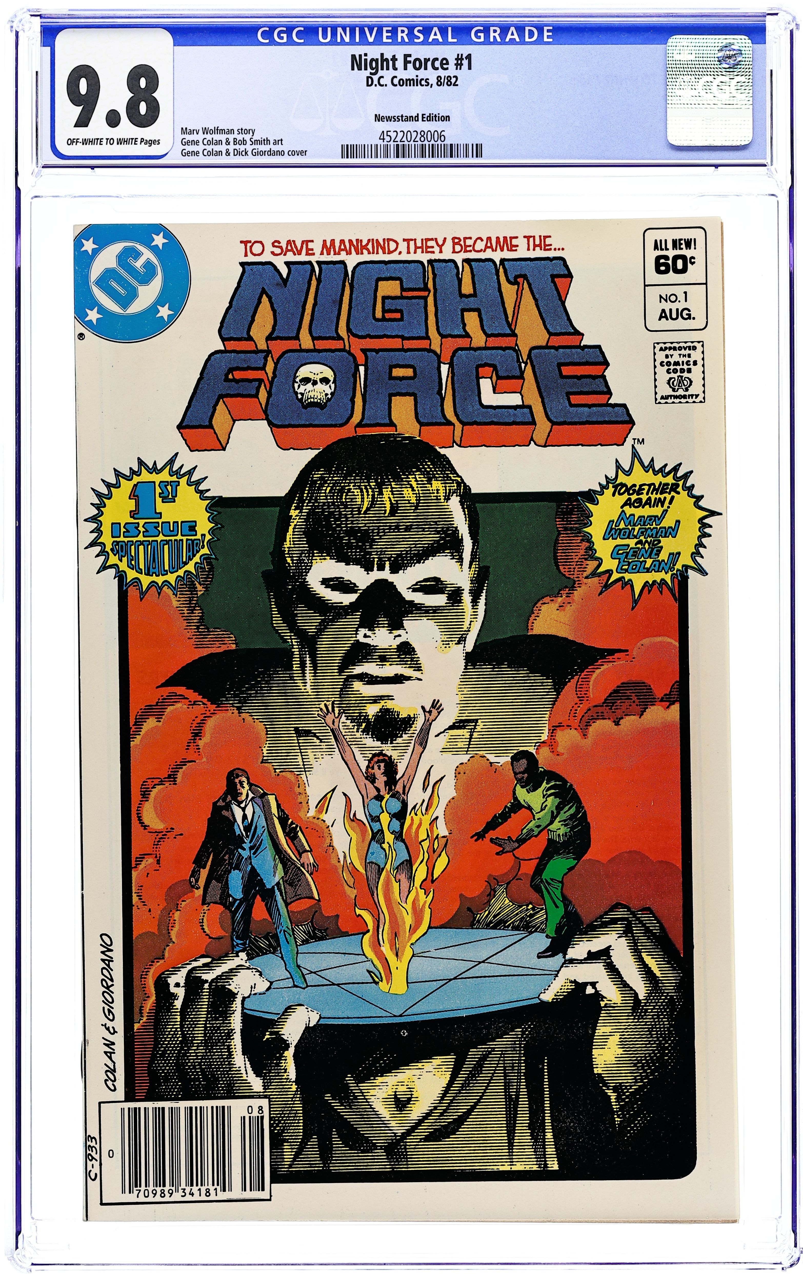 Direct Edition. Cover art by Gene Colan and Dick Giordano. The Summoning Chapter One: Genesis, script by Marv Wolfman, pencils by Gene Colan, inks by Bob Smith. Baron Winter summons a group of people to combat occult evil. Night Forces text article by Wolfman. Ads for Remco Sgt. Rock action figure (Joe Kubert art) and Joe Kubert School of Cartoon and Graphic Art. 36 pgs. $0.60. Cover price $0.60.