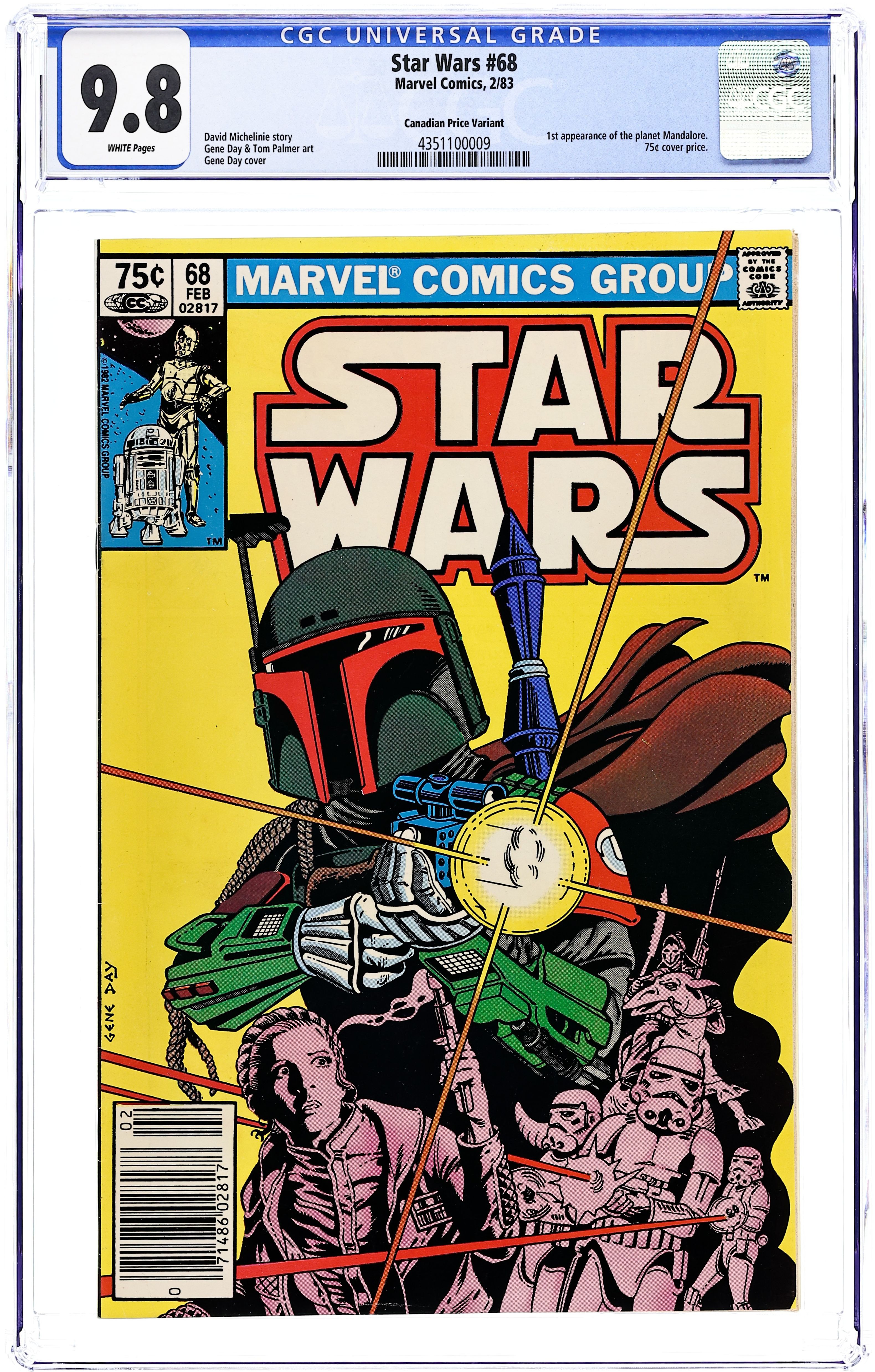 Canadian Edition with 75ยข variant cover price. Origin of Boba Fett. "The Search Begins" Written by David Michelinie. Cover by Gene Day. Art by Gene Day/Tom Palmer. Cover price $0.75.