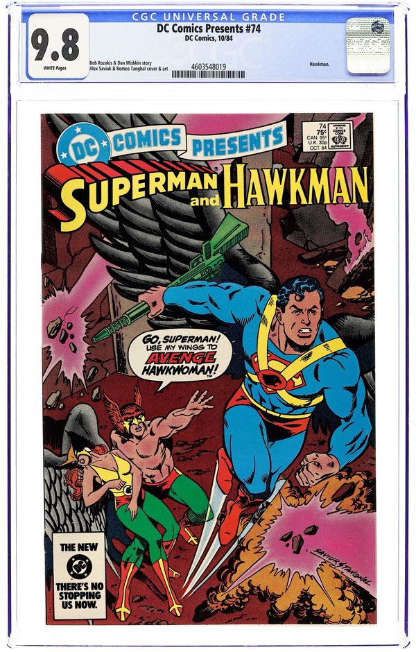 Superman, Hawkman and Hawkwoman investigate a mysterious Kryptonian signal in outer space in "Wings Against the Stars." Script by Bob Rozakis & Dan Mishkin and art by Alex Saviuk & Romeo Tanghal. Cover price $0.75.