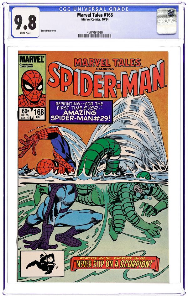 Cover art by Steve Ditko. Never Step On a Scorpion, script by Steve Ditko (plot) and Stan Lee (script), art by Steve Ditko; Spidey battles Scorpion; reprinted from Amazing Spider-Man, The (Marvel, 1963 series) #29. Scorpion illustration by Ditko. 36 pgs. $0.60. Cover price $0.60.