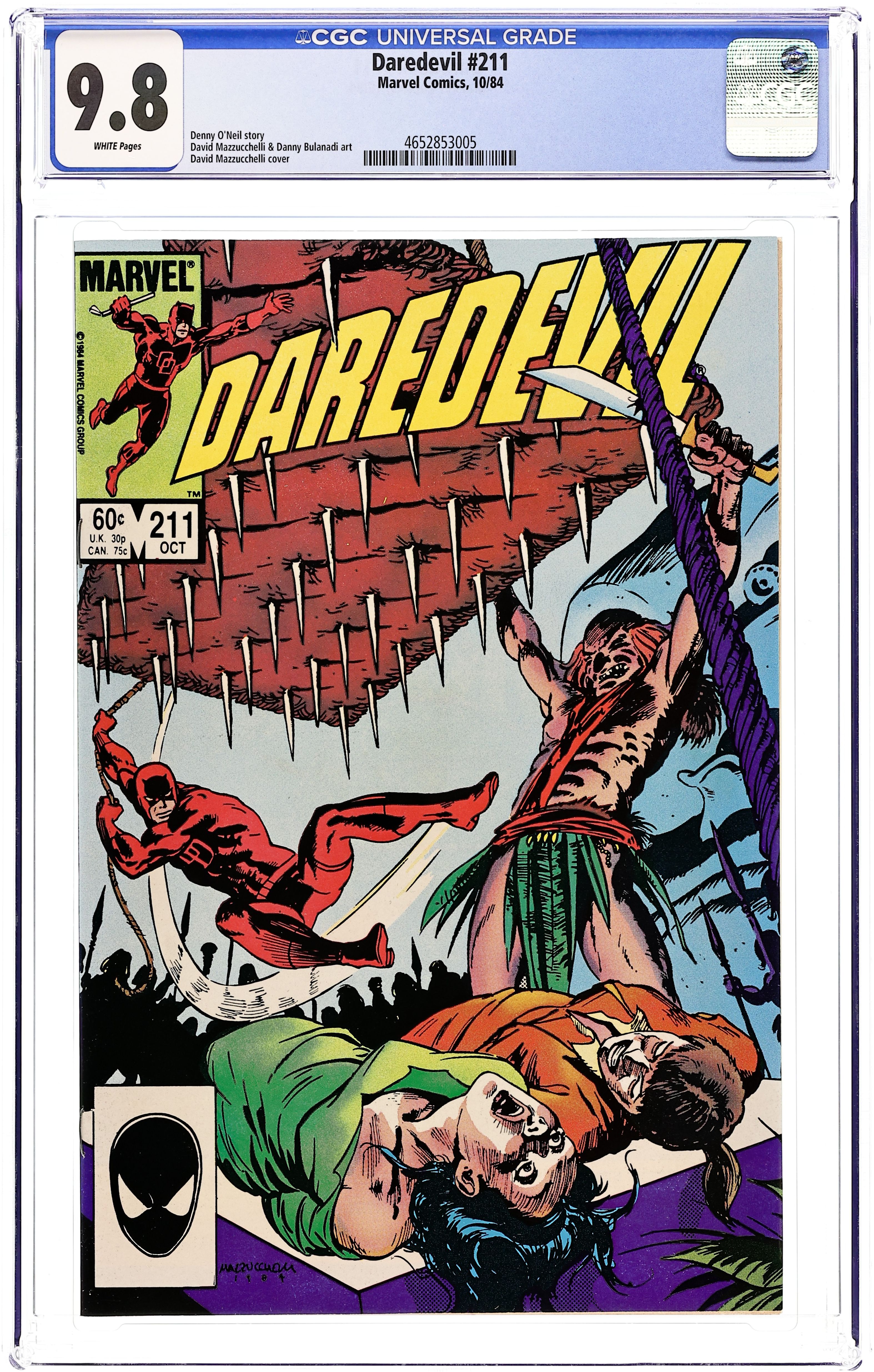 Cover art by David Mazzucchelli. This Hungry God, script by Denny O'Neil, pencils by David Mazzucchelli, inks by Danny Bulanadi; Micah captures Becky and Vanessa for a human sacrifice to his god; DD intervenes, but Vanessa is killed; Kingpin reveals that Vanessa was really an actress he hired to keep his wife safe; DD and Kingpin team-up to take down Micah. 36 pgs. Cover price $0.60. Cover price $0.60.