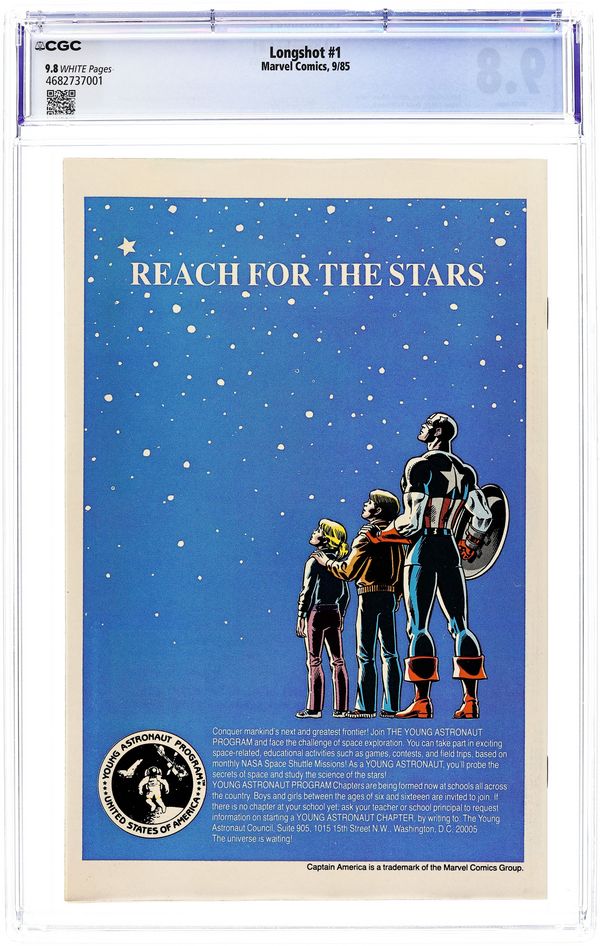 Direct Edition. 1st Art Adams pro work. Arriving on Earth unsure of his own identity, Longshot tries to rescue a kidnapped baby in "A Man Without a Past." Script by Ann Nocenti. Pencils by Arthur Adams (his first pro work). Inks by Whilce Portacio & Anderson. Cover by Adams. 1st appearance of Longshot and Spiral. Cover price $0.75.