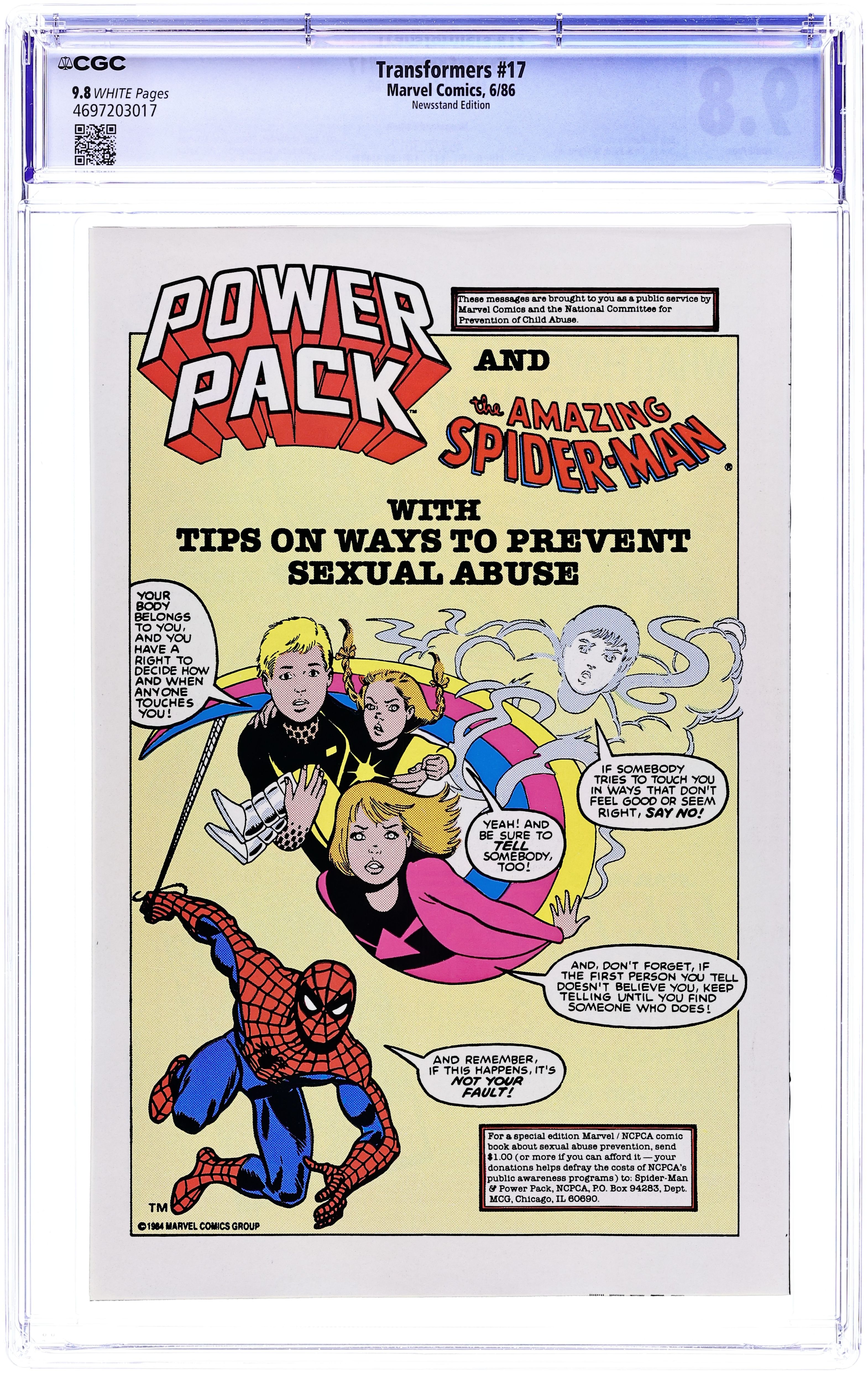 First Printing. Direct Edition. Back on Cybertron, the home planet of the Transformers, the war between the Decepticons and Autobots continues. Scrounge, an Autobot, discovers important and revealing news but is kidnapped before he can relay the news to his Autobot comrades. So Blaster and the other Autobots resolve to find and rescue Scrounge in "Return to Cybertron – Part 1 – The Smelting Pool." Script by Bob Budiansky and art by Don Perlin & Keith Williams. Cover by Herb Trimpe. Cover price $0.75.