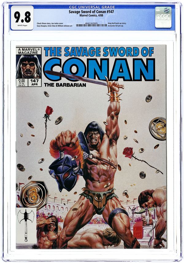 Conan stars in "Vulture's Shadow." Script by Charles Dixon, breakdowns by Gary Kwapisz, finished art by Ernie Chan. This issue also features a story starring King Kull in "Rites of Passage" by William Johnson. Joe Jusko front cover. Armando Gil back cover. Cover price $2.00.