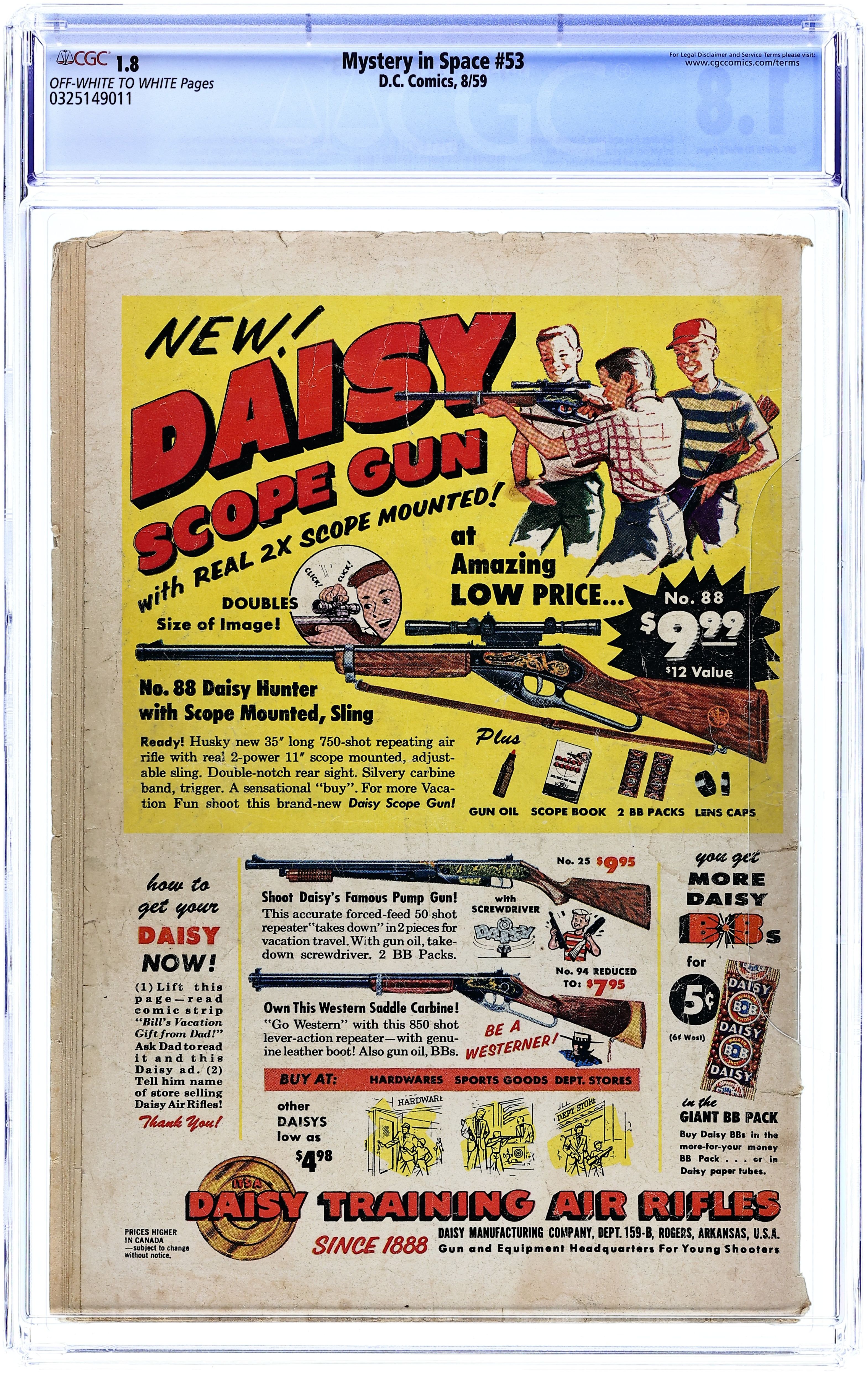 Ends Apr 13 8:49 PM CST Bid History 1 bid Current Bid $1 Your Secret Max Bid If you'd like to bid, please log in or register. Knights of the Galaxy in "Master of Doom" (script by Robert Kanigher as "Dion Anthony," pencils by Carmine Infantino?), "The End of the World" (script by Edmond Hamilton), "The Rocket Lanes of Tomorrow" (art by Joe Simon and Jack Kirby; 2 pages), and "The Man Who Walked Through Walls!" (script by John Broome as "Robert Starr"). Murphy Anderson art. One-page Tootsie Roll ad, "Linda Wins for Captain Tootsie" by Bill Schreiber. 44 Pages, Full Color. Cover price $0.10.