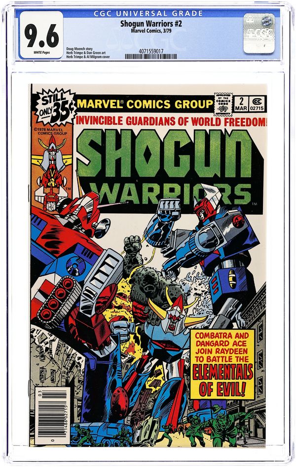 Part 1 of 6 - "Raydeen!" Story by Doug Meonch. Art by Herb Trimpe and Dan Green. Introducing the Guardians of Freedom - the Shogun Warriors. Massive engines of power, forged by the technology of the future, and piloted by the bravest heroes the world has ever known. In the first exciting issue Raydeen battles the colossal might of Rok-Korr! 32 pages, FC NOTE: 1st Marvel Comics appearance of Raydeen, Dangard Ace, and Combatra Cover price $0.35.