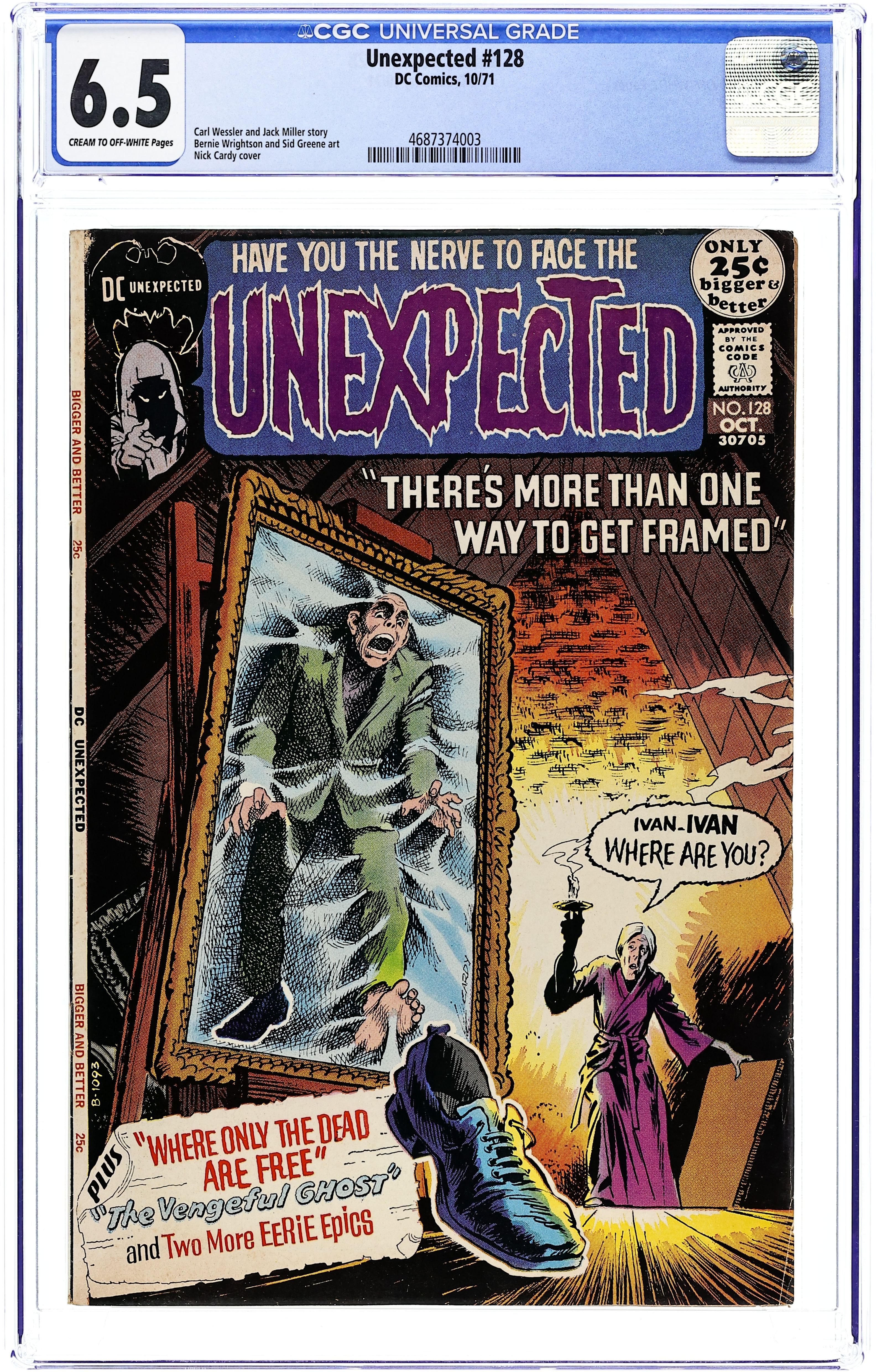 Cover art by Nick Cardy. Where Only The Dead Are Free!, script by George Kashdan, pencils by Bob Brown, inks by Frank Giacoia. The Vengeful Ghost of Glenville Gap!, script by Carl Wessler, art by Sid Greene. The Prisoner of a Dead World, art by Nick Cardy. The Haunted Violin, art by Doug Wildey. There's More Than One Way To Get Framed, script by Jack Miller, art by Bernie Wrightson. 52 pgs. $0.25. Cover price $0.25.