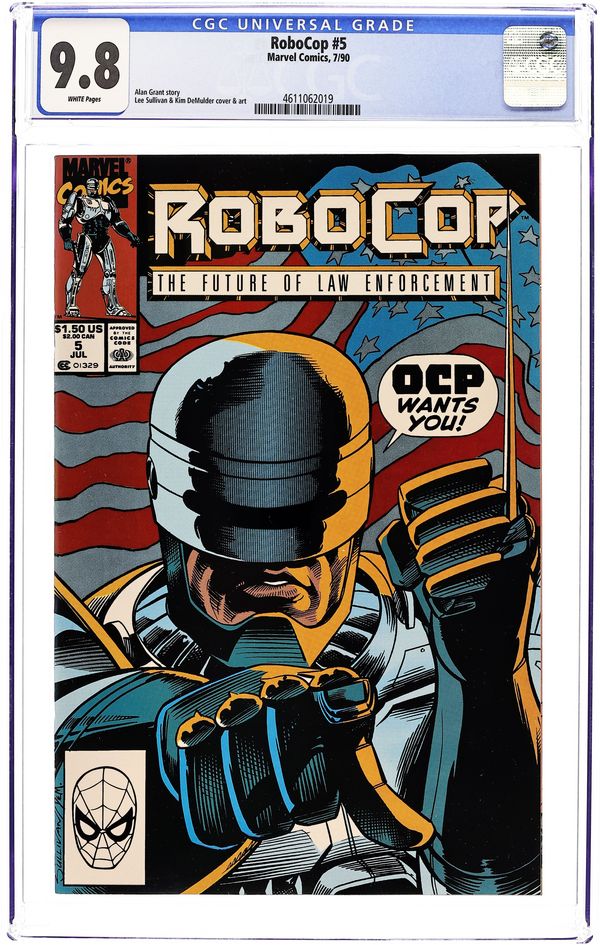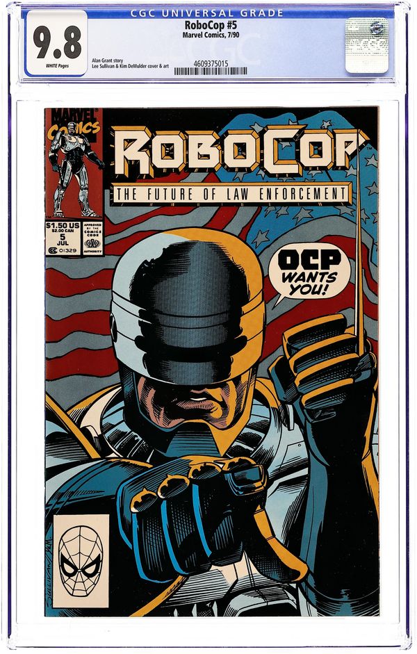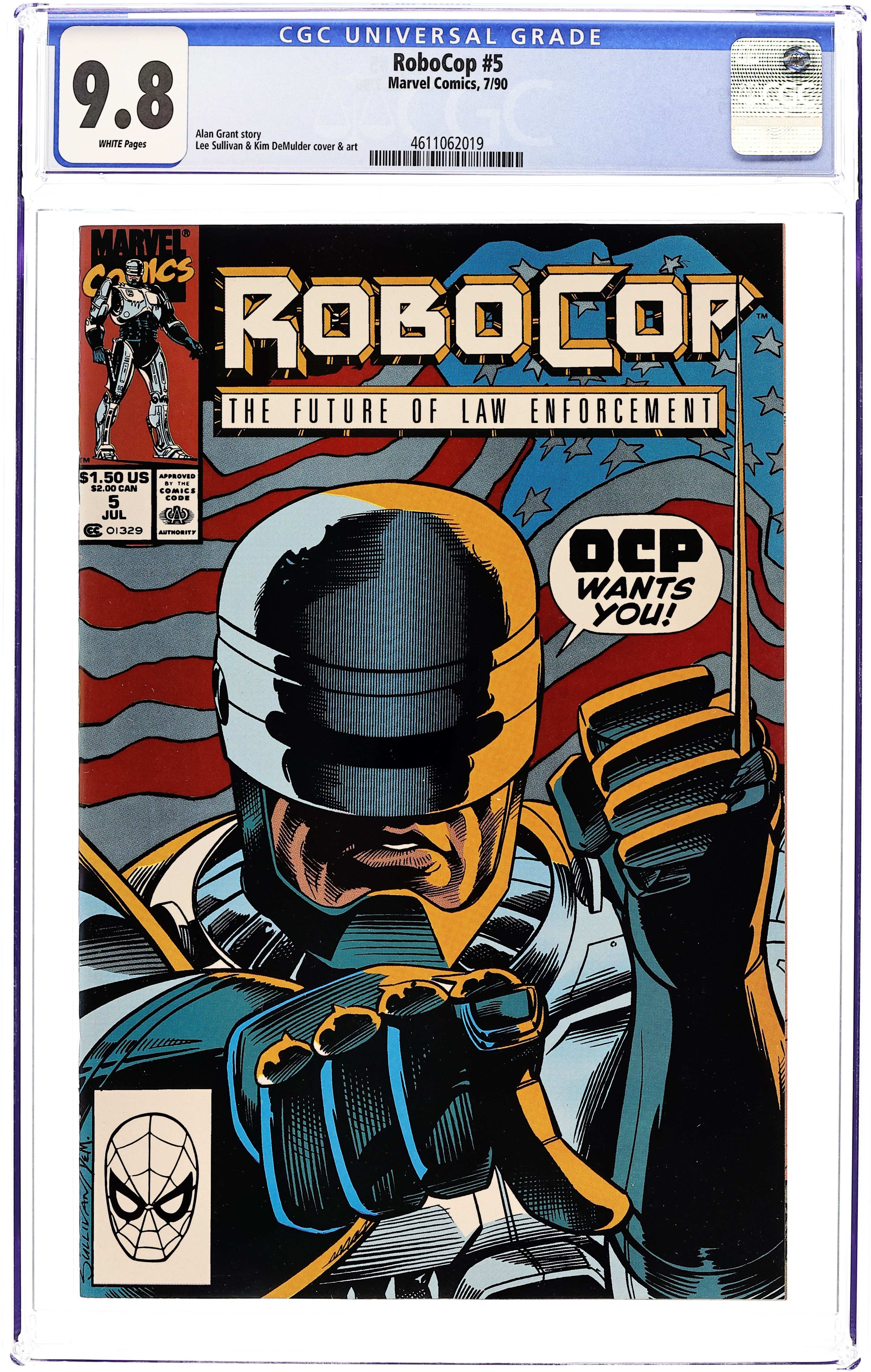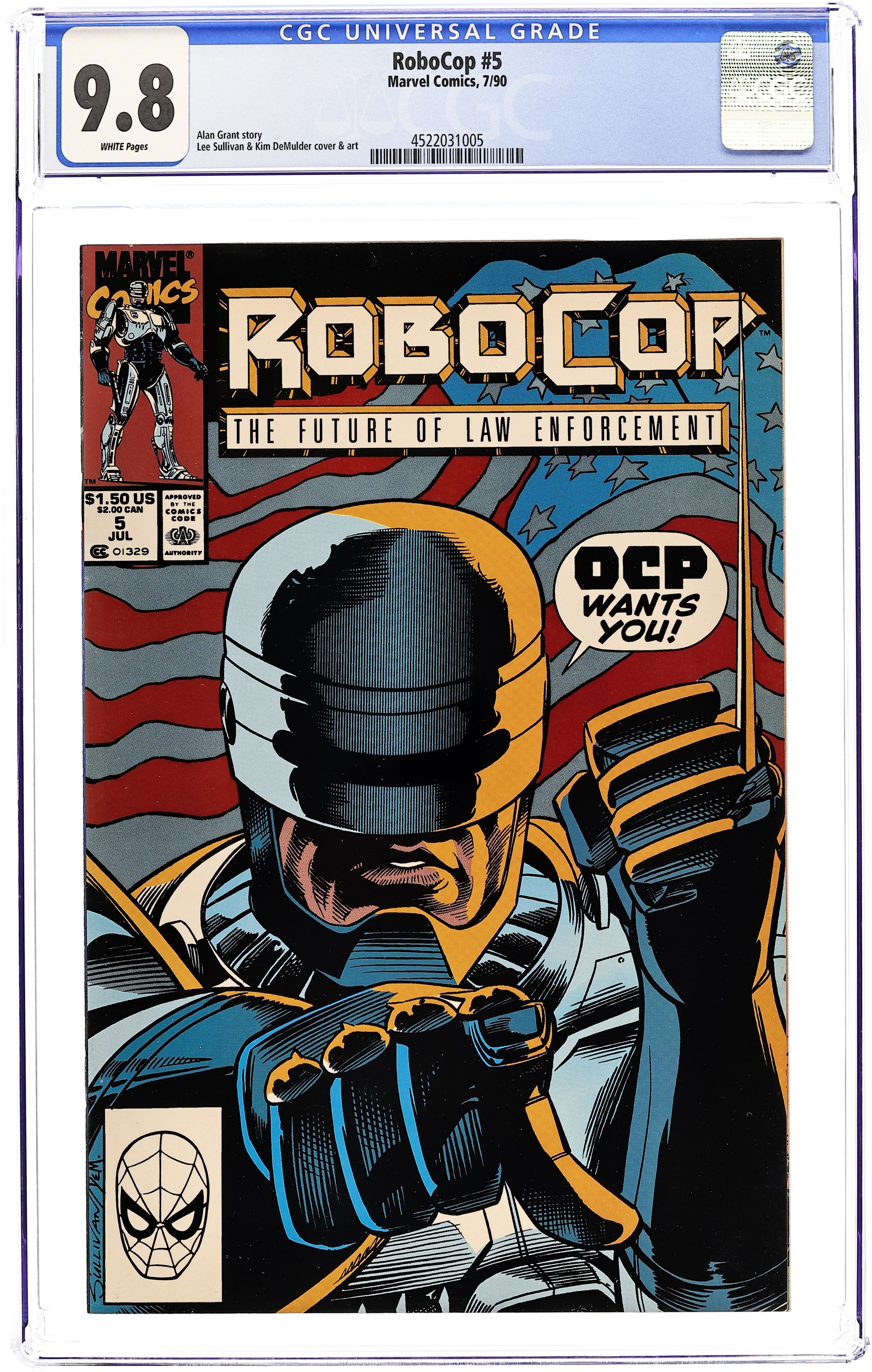 Cover by Lee Sullivan and Kim DeMulder. War Monger!, script by Alan Grant, art by Lee Sullivan and Kim DeMulder; OCP is presented with the chance to finally test RoboCop in a war scenario; The Spanish military is at war with North Africa and pays for the services of RoboCop to assassinate their enemys leader, General Abu Dara aka the Desert Hawk; Dropped into Algeria with heavy artillery, RoboCop makes his way across the desert fighting robotic tentacles and motor cycle troops without his prime directives holding him back. 36 pgs., full color. $1.50. Cover price $1.50.