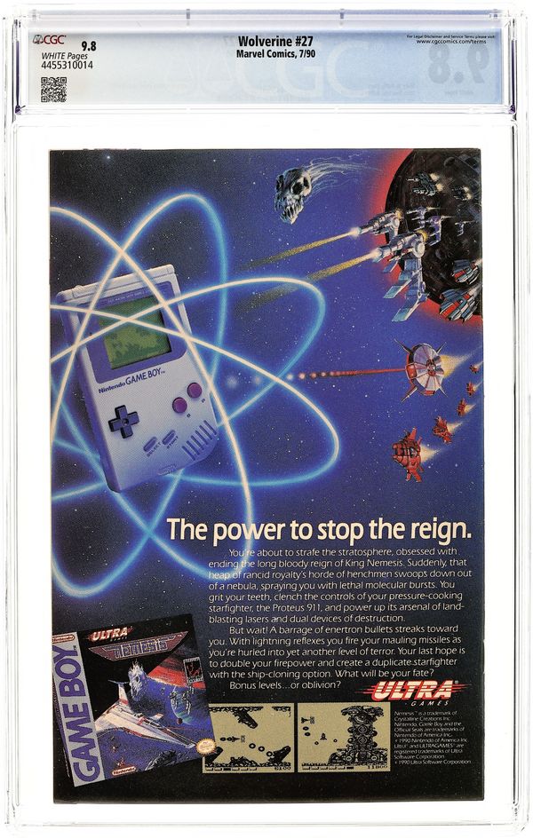 Newsstand Edition. The Lazarus Project: Part 1 of 4 - "Predators and Prey!" Written by Jo Duffy. Art by John Buscema and Dan Green. Cover by Jim Lee. A mysterious broker makes a deal with Coy to complete the nefarious Lazarus Project. Meanwhile, deep inside the Baron's palace, Wolverine and Jessica Drew discover brand new threat. 32 pages, FC Cover price $1.75.