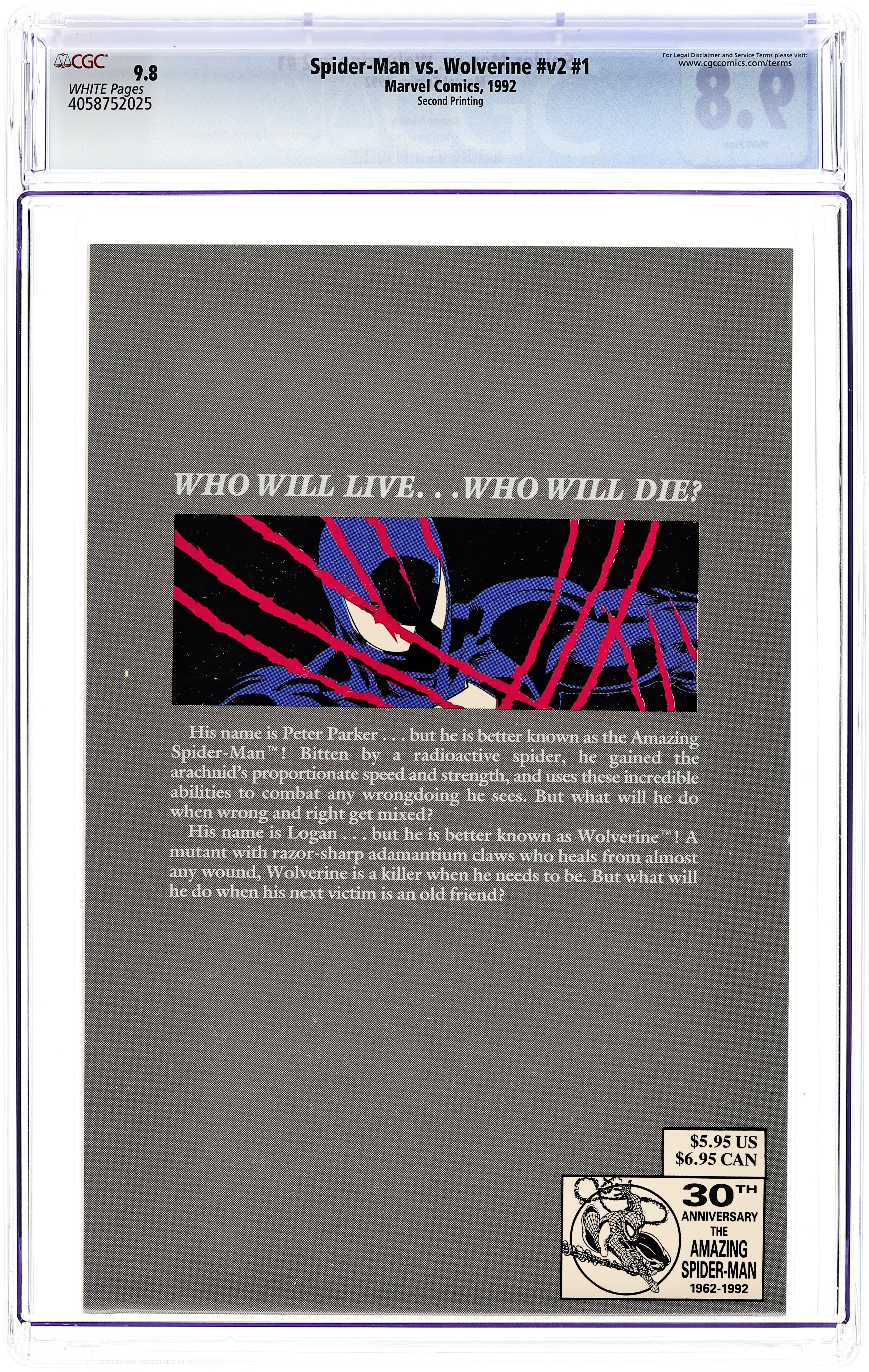 Marvel re-presents the classic Spider-Man vs. Wolverine (1987 1-Shot) in a new prestige squarebound format. Starring the Amazing Spider-Man and the feral X-Man, Wolverine, in an international adventure of intrigue wrought with betrayal, revelations, and death. Featuring the death of Ned Leeds (Hobgoblin III and long time Spidey supporting cast member), the repercussions of this story were felt in the Spidey titles for years to come.