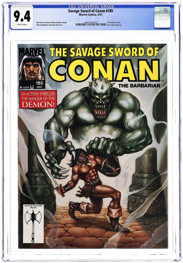 Conan obtains the legendary Ring of Molub and the curse that comes with it in "Masque of the Demon." By Don Kraar, Dale Eaglesham, and Pat Redding. This issue also features Conan in "Acts of Bravery" by Renee Witterstaetter and Ernie Chan. Ovi front cover. Cover price $2.25.