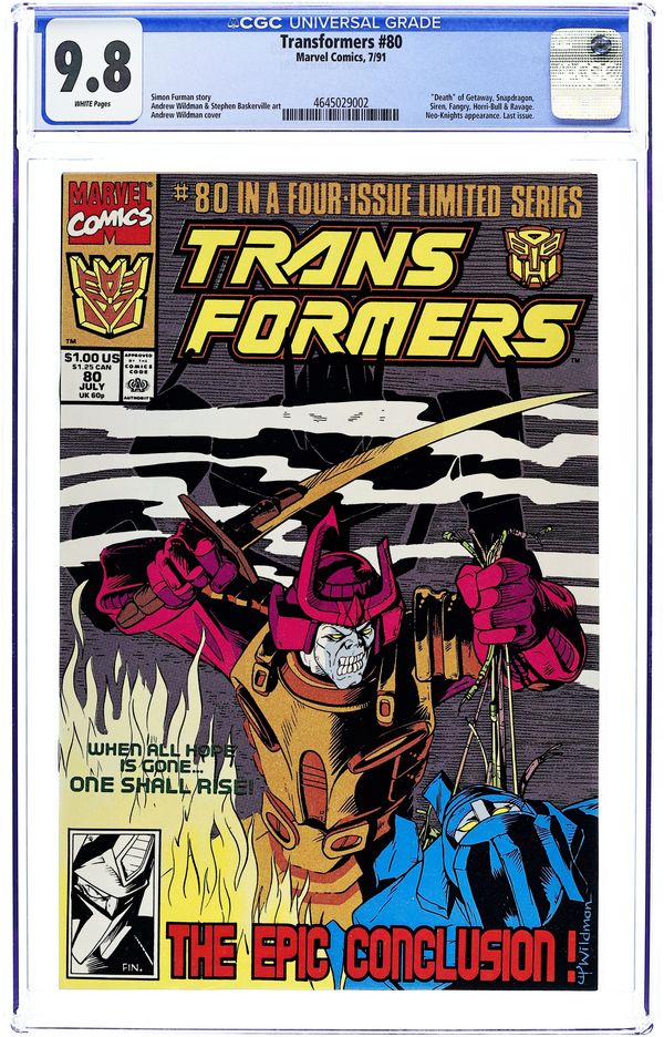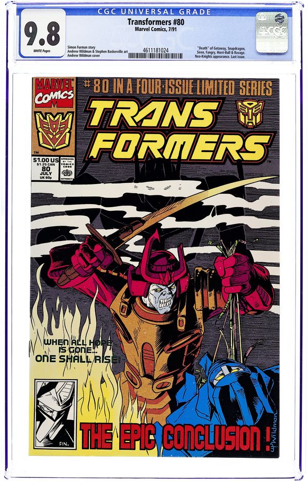 Direct Edition. Cover pencils by Andrew Wildman, inks by Stephen Baskerville. "End of The Road!", script by Simon Furman, pencils by Andrew Wildman, inks by Stephen Baskerville; The Autobots have lost on Klo to the Decepticons; All hope seems to be lost until Optimus Prime is reborn by the Last Autobot using Hi-Q (with Prime's memories) as the template; The defeated Decepticons then leave Klo, but plot other plans against the Autobots. 36 pgs., full color. Cover price $1.00.