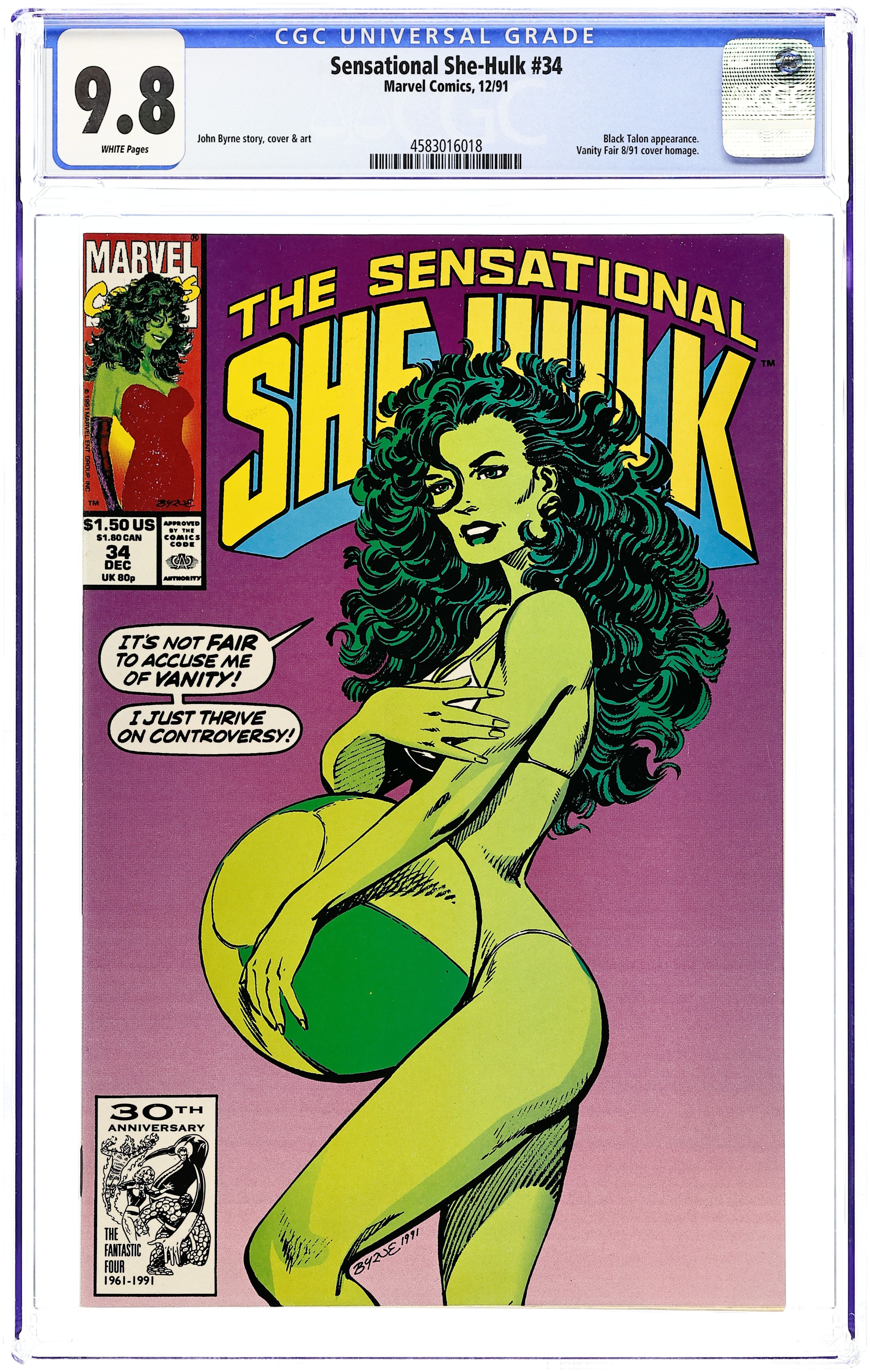 Cover art by John Byrne. "Who Was That Zombie I Saw You With...?" starring She-Hulk, Weezi Mason, D.A. Tower, Black Talon II (Samuel D. Barone), The X-Humed (zombies), Scaleface, and Mahkizmo, script and pencils by John Byrne, inks by Keith Williams; She-Hulk and Weezi travel to New Orleans to meet with a Voodoo master they believe can help solve a case; She-Hulk battles Black Talon II. 36 pgs. Cover price $1.50.