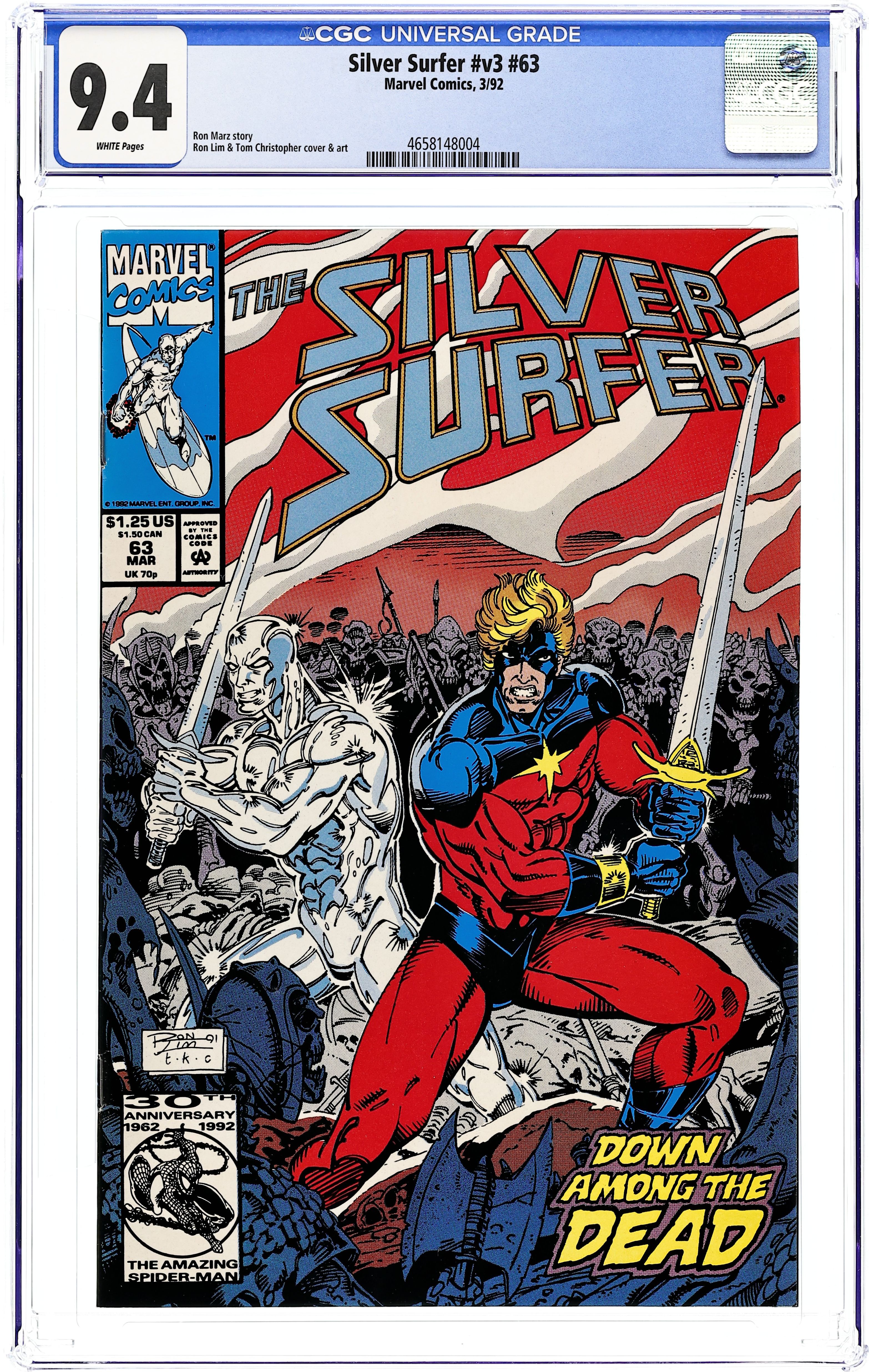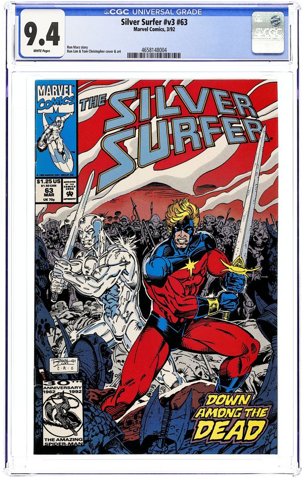 "Down Among the Dead!" Guest-starring Captain Marvel. Part 3 of 4. Story by Ron Marz. Art by Ron Lim and Tom Christopher. The Silver Surfer finds himself in the land of the dead and powerless. How can he possible survive against hordes of the dead who want to add him to their ranks without the Power Cosmic? Maybe with a little help from a legendary hero from Marvel's past. Cover price $1.25.