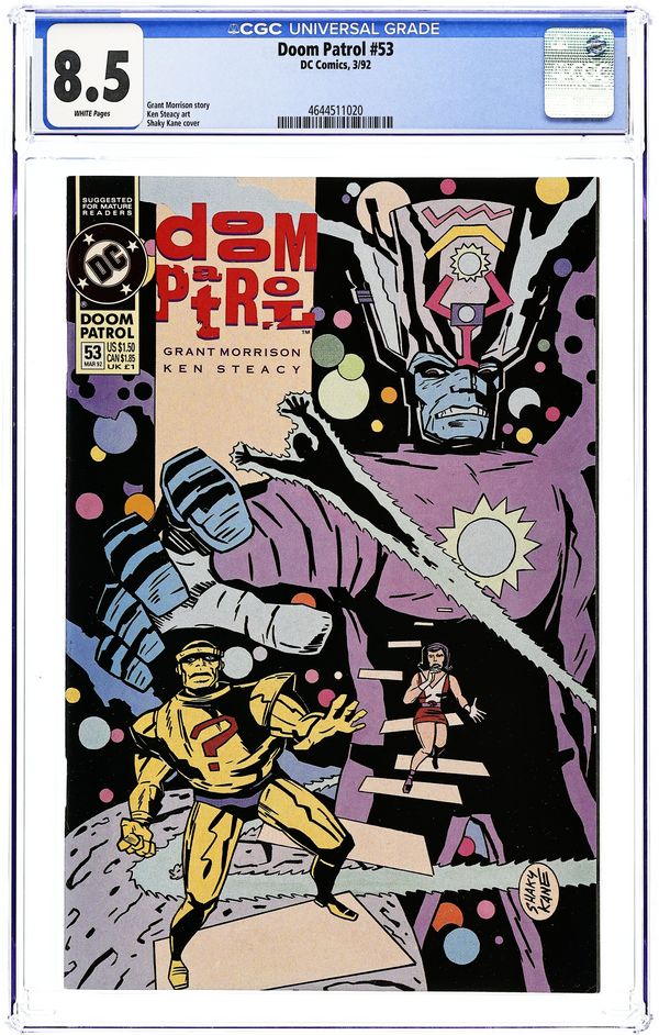The Phantom Stranger! Hellblazer! Mr. E! Doctors One through Thirteen! They're the Doom Patrol and they're out to stop evil in whatever form they find it! Face front, pilgrim! A truly bizarre parody written by Grapplin' Grant Morrison, with art by Keen Ken Steacy. Cover by Shakey Shaky Kane. 'Nuff said. Suggested for Mature Readers. New Format. Cover price $1.50.