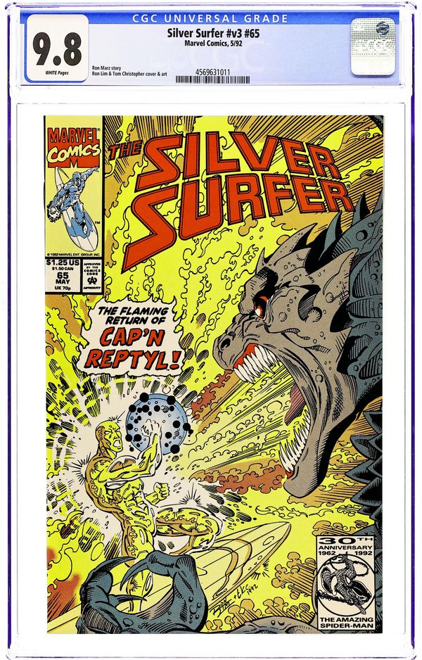 Cold Blooded!" Story by Ron Marz. Art by Ron Lim and Tom Christopher. The once space pirate known as Reptyl, an old foe of the Silver Surfer's, has returned more powerful and more dangerous than ever. 32 pages. Cover price $1.25.