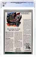 Unbagged; magazine only, no promo card. Article on Dinosaurs: A Celebration; article on writing by Peter David; article (part 2) on Marvel Masterpieces cards; interview with Alan Davis on Excalibur; 1-page Fred Hembeck strip; Doctor Strange illo by Darren Auck and Steve Alexandrov; Hulk cover by George Perez Cover price $1.50.