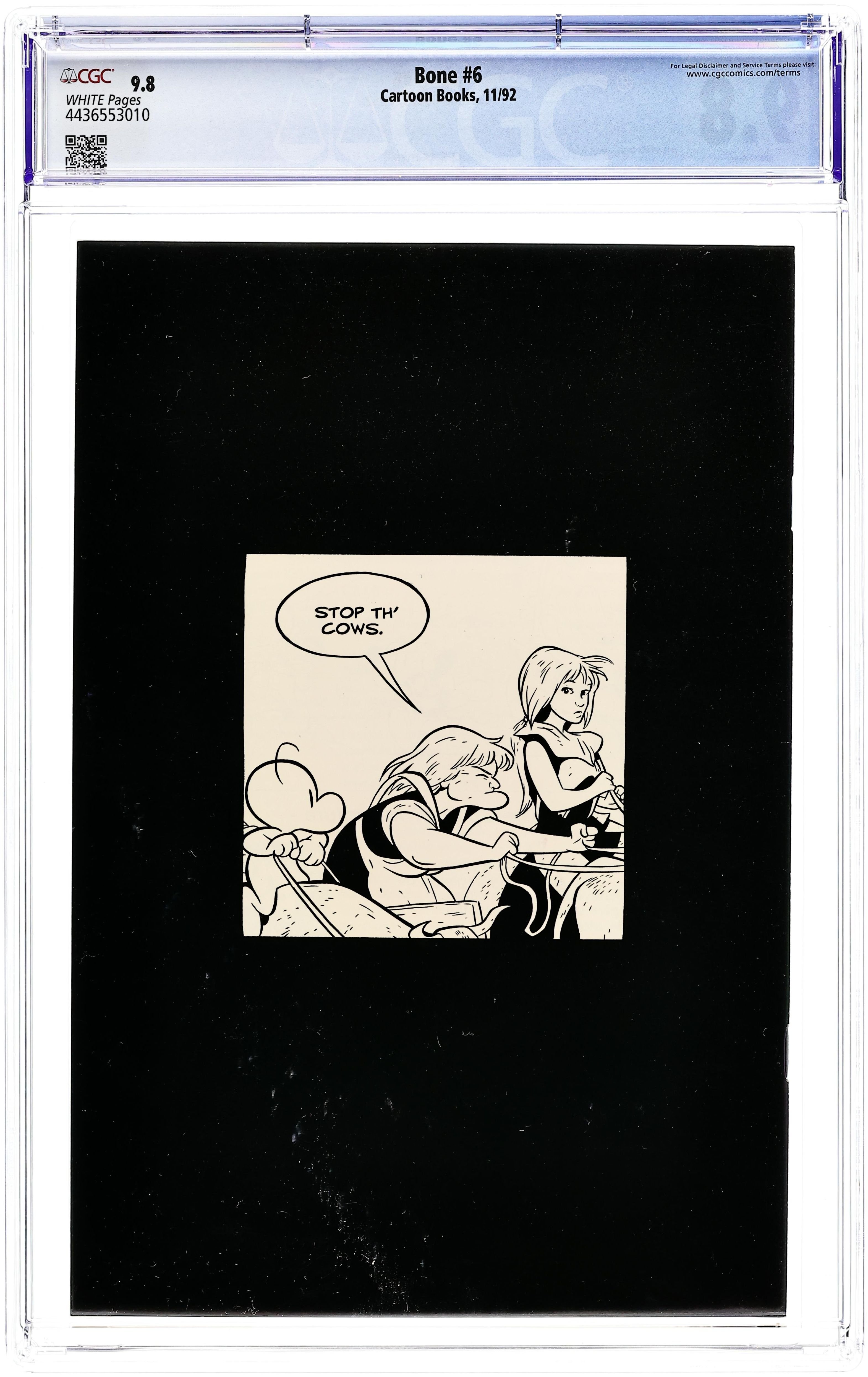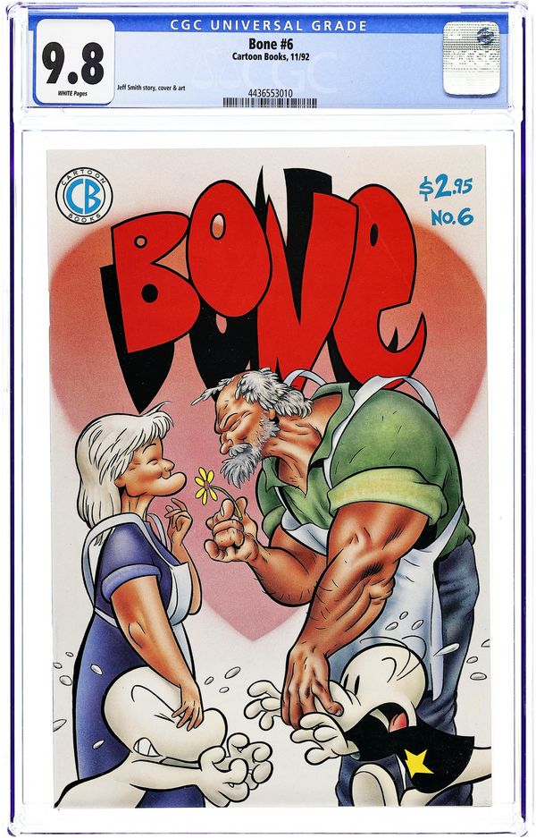 Cover art by Jeff Smith. Untitled story, script and art by Jeff Smith; the story of why Phoney Bone and his friends were run out of Boneville is told. Gran'ma, Thorn and Fone Bone travel to town and locate Smiley Bone and Phoney Bone. This is a first printing. Most issues from #1-12, and possible some beyond, have been reprinted. Reprints may be identified by a 2nd, 3rd, 4th, 5th, etc. printing notice inside the comic. 28 pgs. $2.95. This is a first printing. Most issues from #1-12, and possible some beyond, have been reprinted. Reprints may be identified by a 2nd, 3rd, 4th, 5th, etc. printing notice inside the comic. Cover price $2.95.