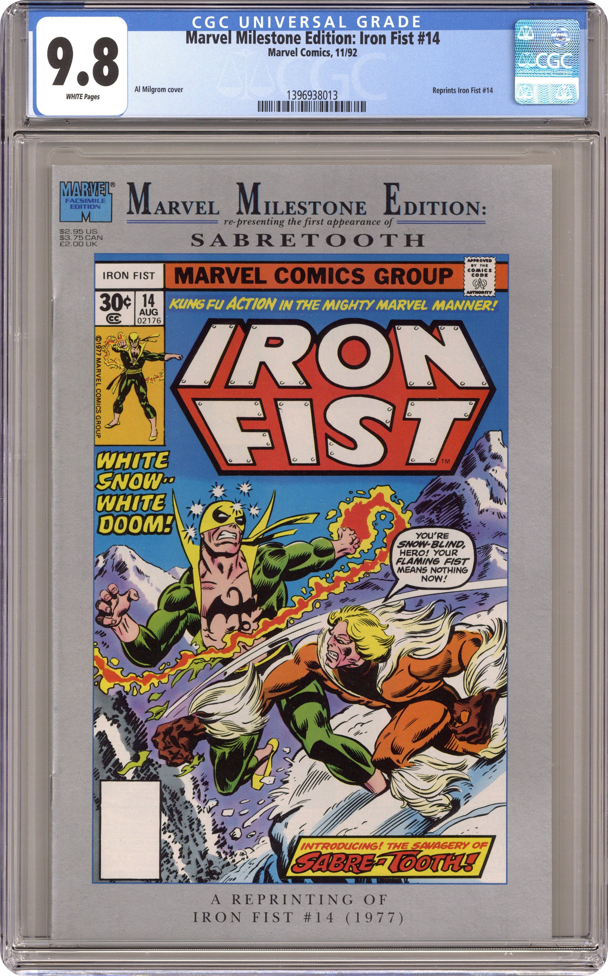 Reprints Iron Fist 14 (1st Sabretooth); John Byrne art Cover price $2.95.