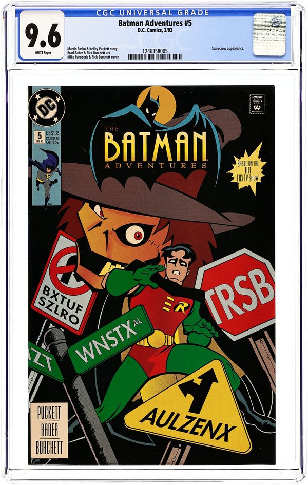 "Riot Act II." Batman and Robin race against the clock to combat the illiteracy disease that is plaguing Gotham City. Based on Batman The Animated Series. Written by Martin Pasko and Kelley Puckett. Pencils by Brad Rader, inks by Rick Burchett. Cover by Mike Parobeck. Cover price $1.25.