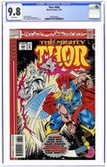 Cover pencils by M. C. Wyman, inks by Mike DeCarlo. Blood and Thunder part 1 of 13, "Distant Thunder," script by Ron Marz, pencils by Bruce Zick, inks by Mike DeCarlo; In Asgard, Odin muses on Thor being absent from Asgard and his state of mind; Thor, meanwhile, is being persuaded by the Mind Valkyrie to raze not only Asgard, but all the Nine Worlds; While Thor rages, Sif and Beta Ray Bill look on, determined to try to talk sense into Thor; Thor strikes Sif down, when Bill appears; Thor easily defeats the both of them; Bill pleads for Sif to leave to gather more allies, or warn Odin if necessary; Sif leaves via the Norn Stones, and Thor strikes Bill with enough force to shatter the asteroid they were fighting upon; Before Thor can deliver the killing stroke though, the Silver Surfer arrives. 16-page insert on the Midnight Sons. Bullpen Bulletins. 52 pgs., full color. $1.25. Cover price $1.25.