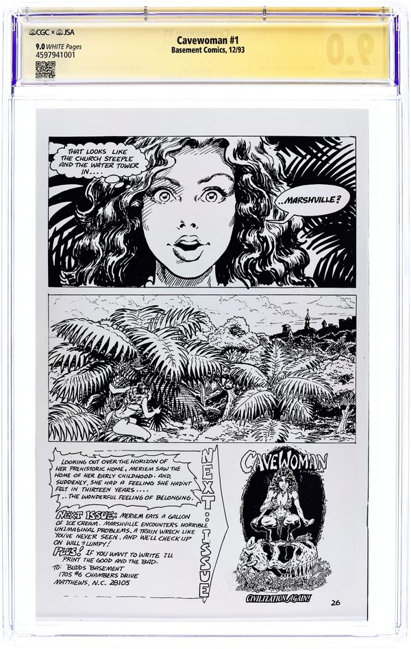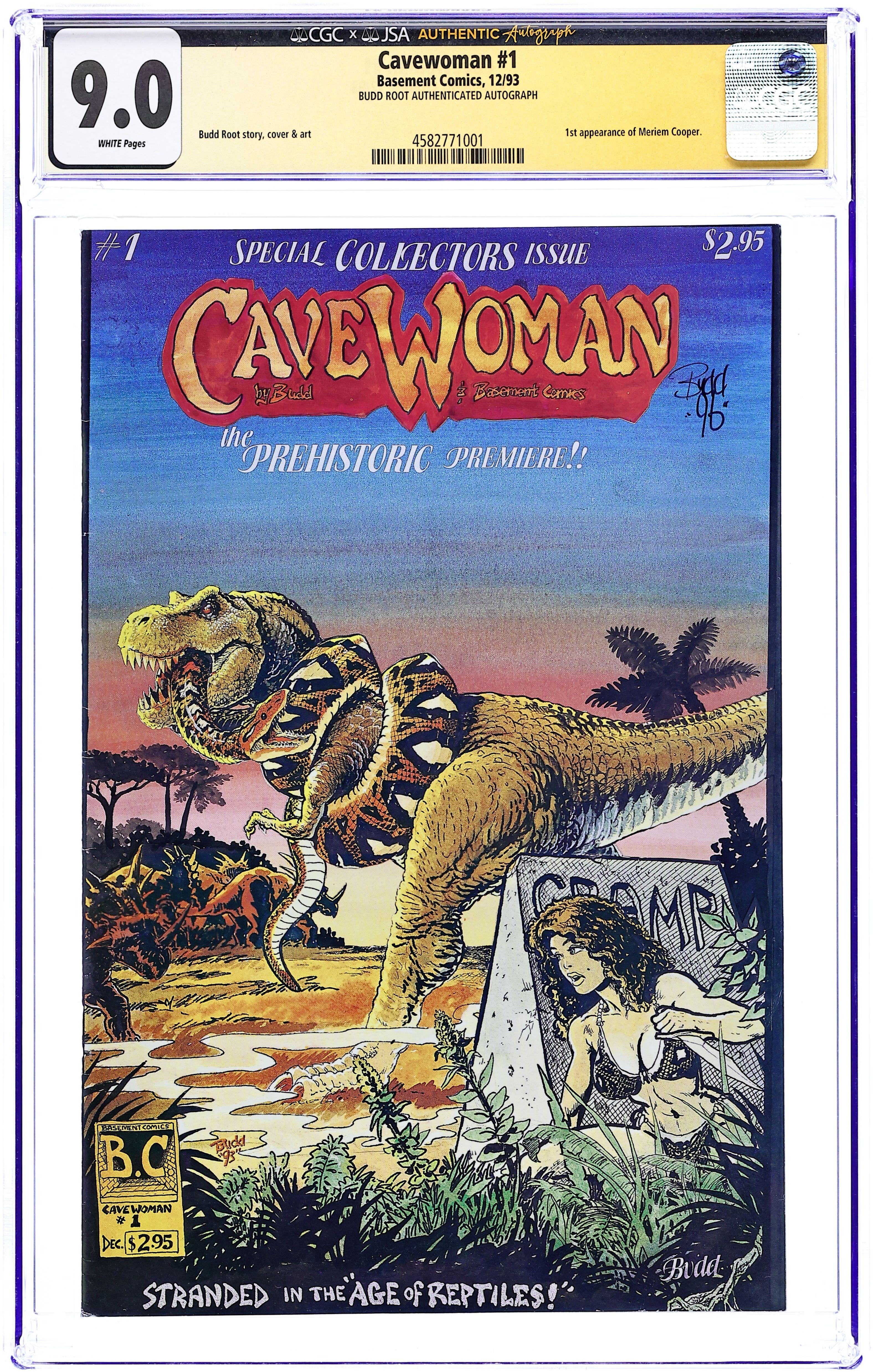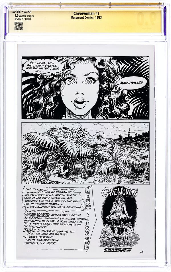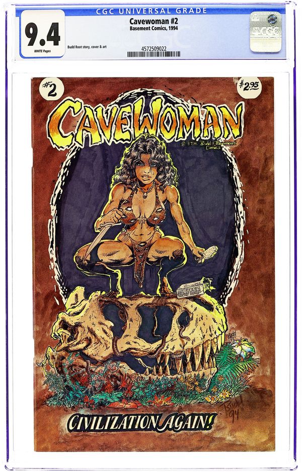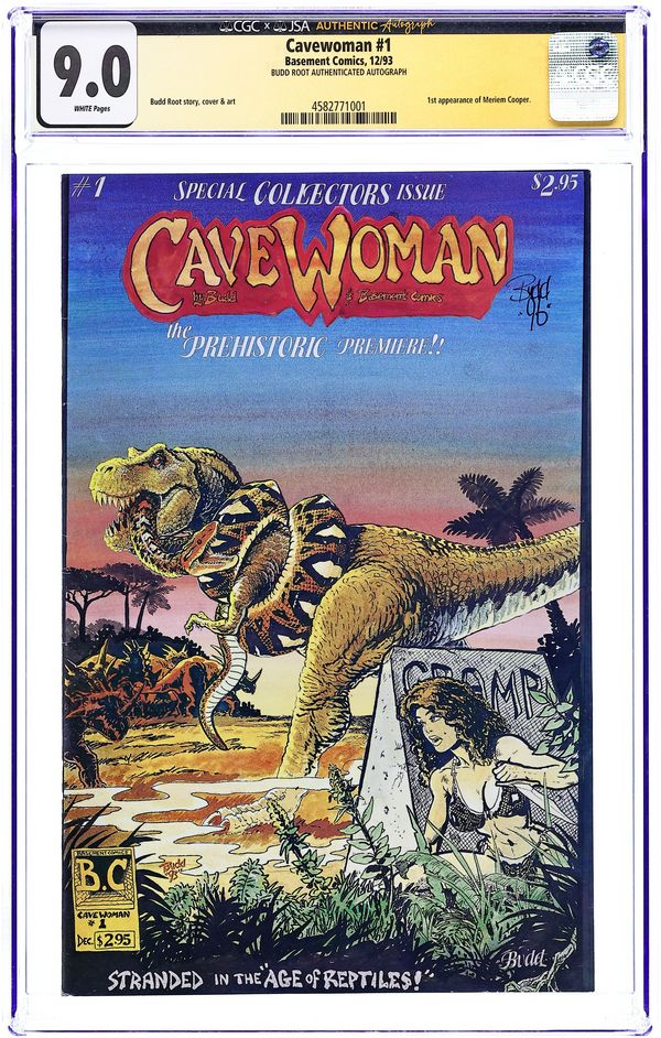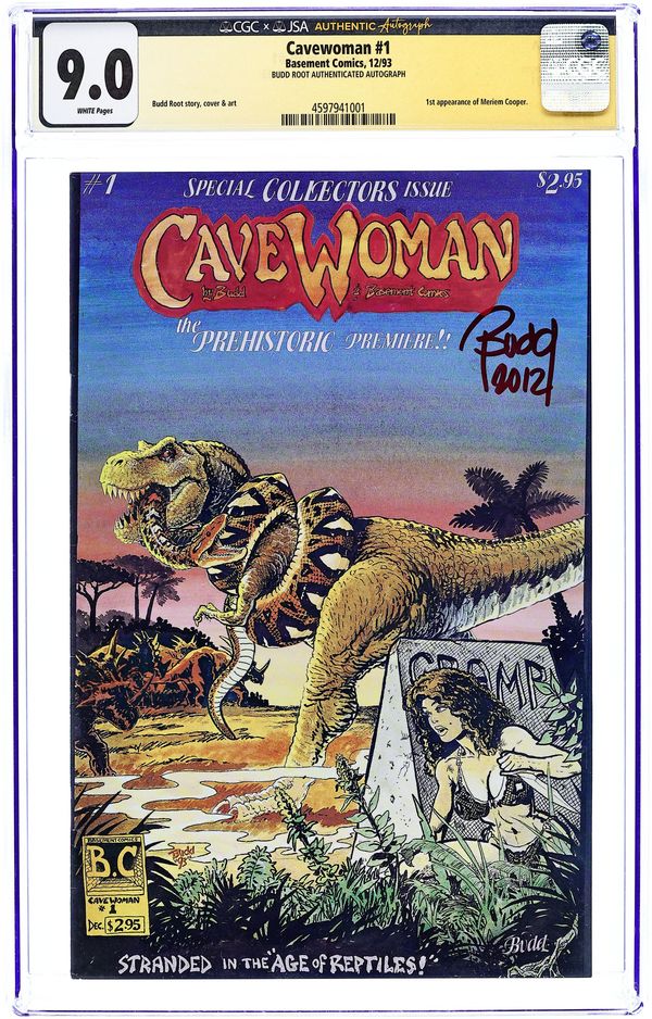 Story, art and cover by Budd Root. The debut of voluptuous superwoman Meriem Cooper, who battles dinosaurs in the distant past. When the entire town of Marshville Oregon is transported back in time, only Cavewoman can protect its hapless citizens. 28 pages, B&W. Mature readers. Cover price $2.95.