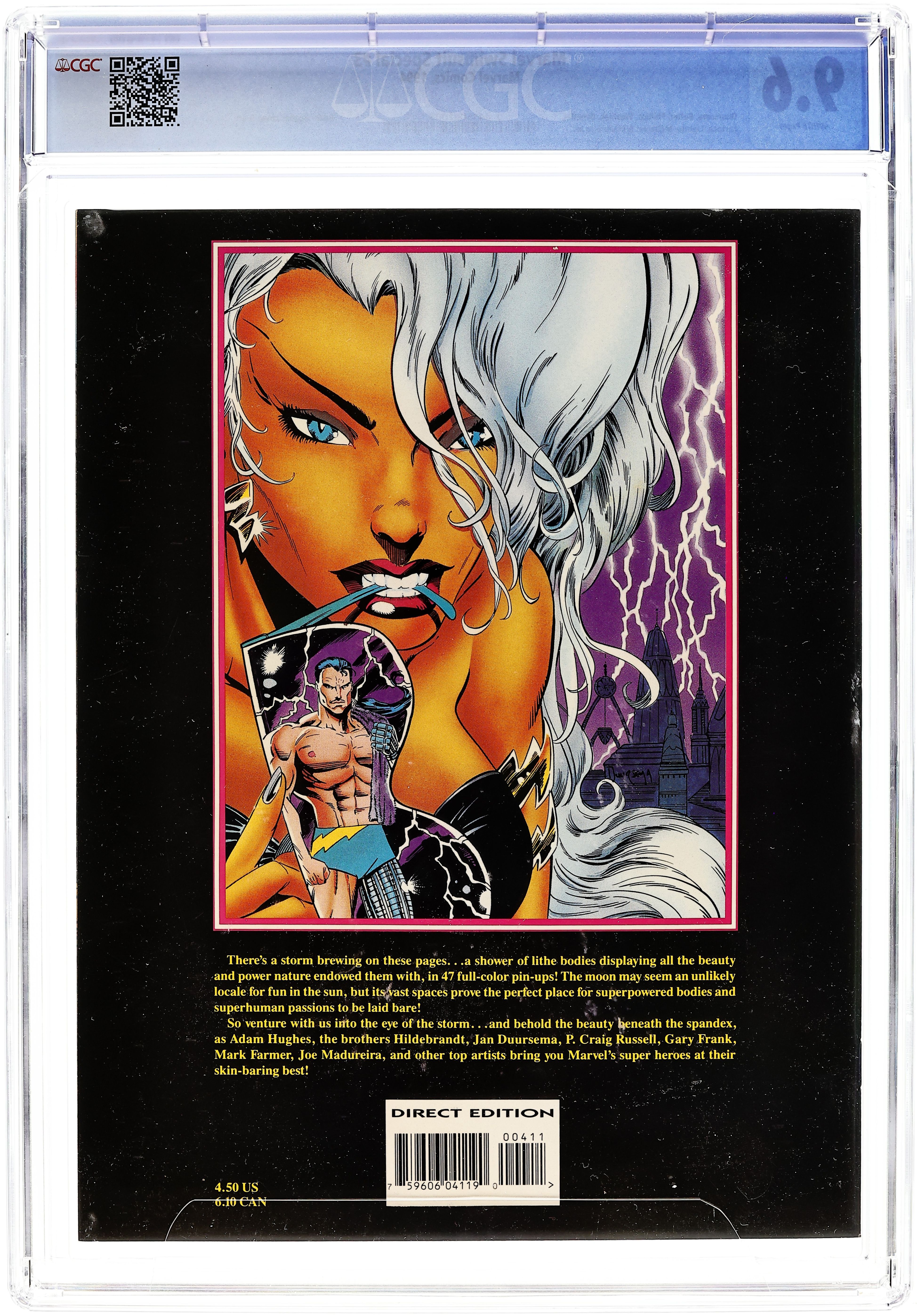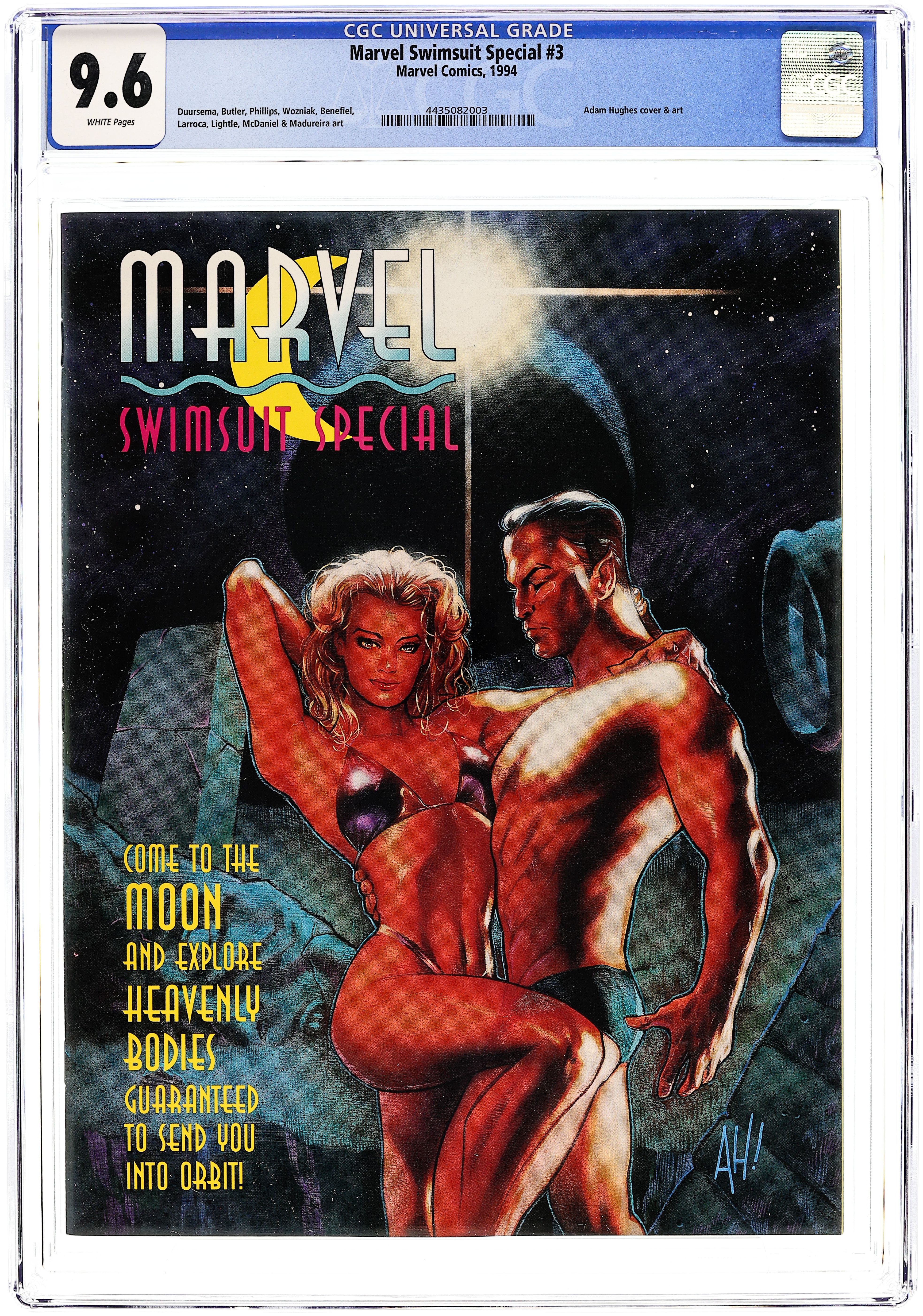 Adam Hughes Sub-Mariner cover and two-page She-Hulk pin-up. Contributing artists: Adam Hughes, Joe Phillips, Joe Madureira, P. Craig Russell, John Lowe, Chris Wozniak, Scott Benefiel, Jasen Rodriguez, Salvador Larroca, Sergio Melia, Steve Lightle, Scott McDaniel, Jung Choi, Rick Mays, John Cebollero, Jan Duursema, Greg Wright, Aron Wiesenfeld, Klaus Janson, Tom Raney, Steve Epting, Bret Blevins, John Stracuzzi, Lou Harrison, Dan Lawlis, Jeff Albrecht, Kerry Gammill, Michael Kraiger, Tom Morgan, Gary Frank, Mark Farmer, Greg Hildebrandt, Tim Hildebrandt, Jeff Johnson, Dan Panosian, Carl Potts, Jason Pearson, James Fry, Harry Candelario, Brian Stelfreeze, Darick Robertson, Larry Mahlstedt, Steve Geiger, Claudio Castellini, Al Williams. Intended to be a parody of Sports Illustrated Magazine. Cover price $4.50.