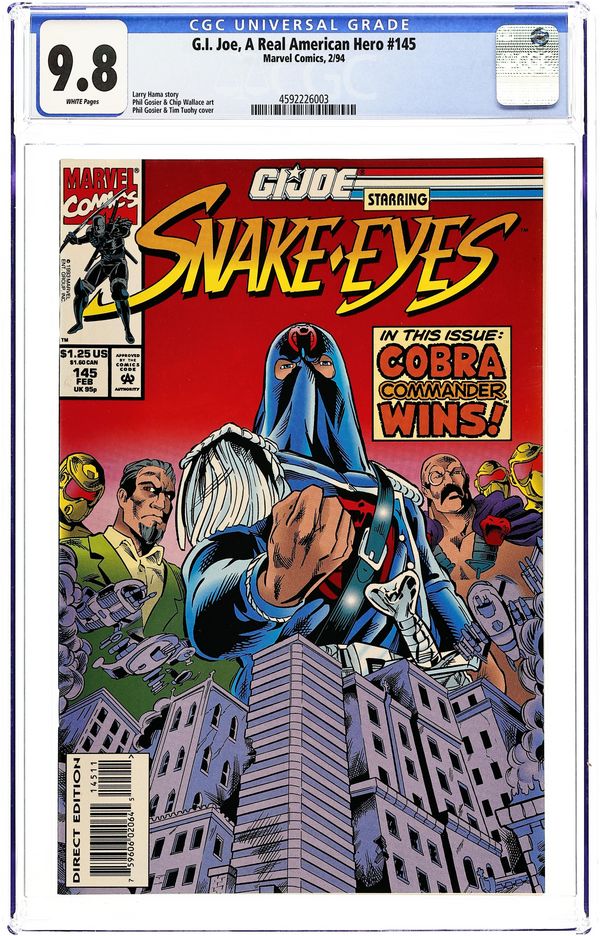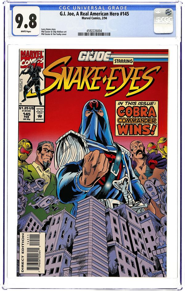Cobra Commander wins in "Threads and Resolutions"! Characters: Cobra Commander; Spirit; Mutt; Road Block; Storm Shadow; Hawk; Grunt; Duke; Stalker; Rock 'N Roll; Zartan; Destro; Baroness; Billy; Dr. Mindbender; Sci Fi; Payload; Space Shot; Zarana; Blow Torch; Hardtop; Snake-Eyes; Scarlett; Jinx; Dojo; Nunchuk. Written by Larry Hama, with art by Phil Gosier and Chip Wallace. Cover by Phil Gosier and Tim Tuohy. Cover price $1.25.