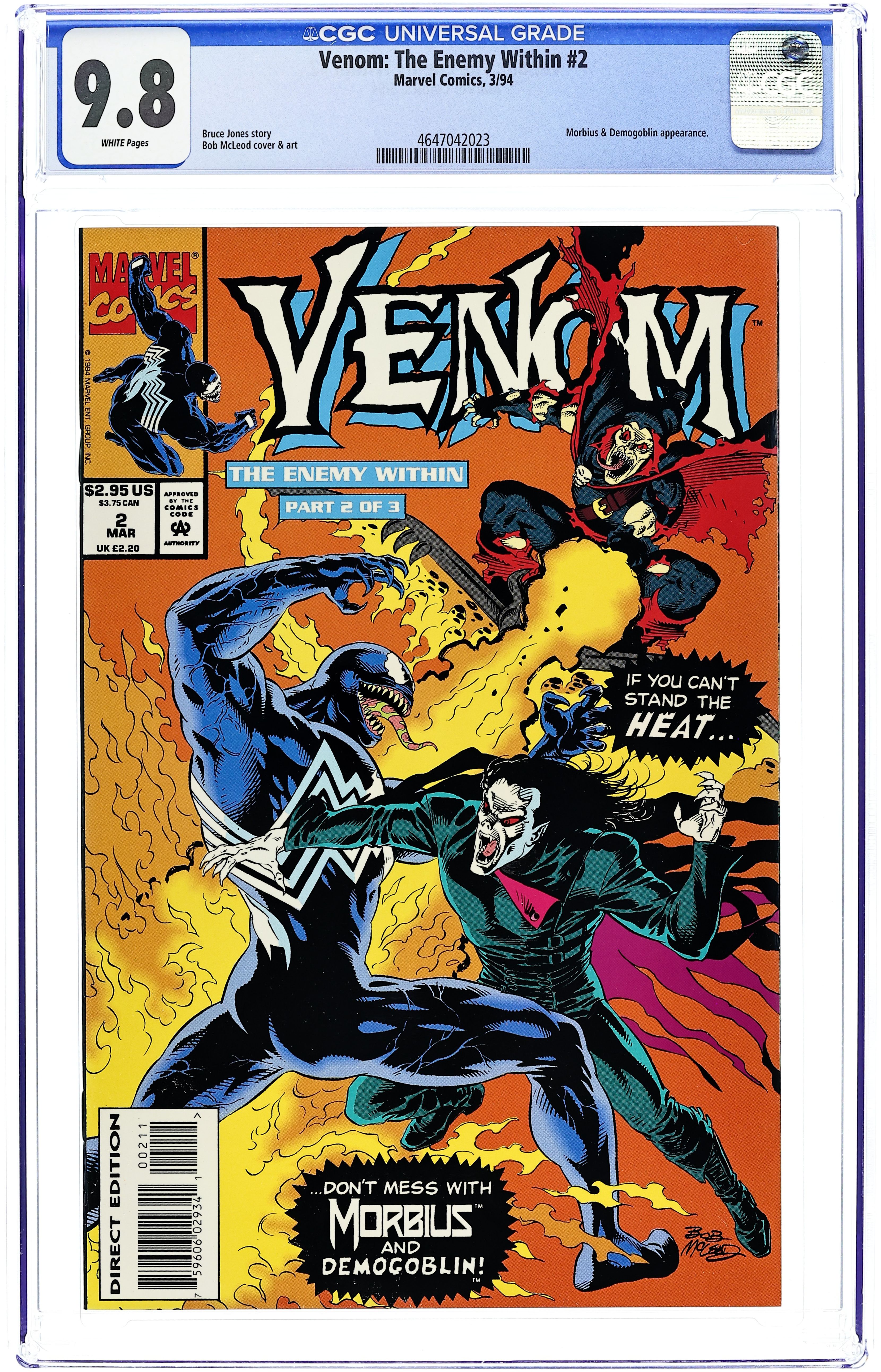 Direct Edition. The intrigue comes to a boil in part 2 of this explosive limited series! Venom, Morbius and Demogoblin are caught in the middle of a demonic invasion of San Francisco. You'll be shocked when you see who's on which side, and who's behind the invasion. Written by Bruce Jones. Art and cover by Bob McLeod. Cover price $2.95.