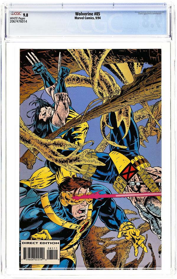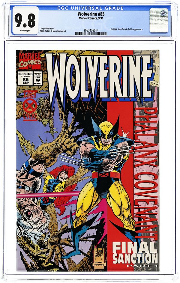 Holofoil Edition. Direct Edition. Giant-size issue. Collector's edition. HoloGraphic stripe on cover. Wraparound cover pencils by Adam Kubert, inks by Mark Farmer. The Phalanx Covenant: Final Sanction Part I Full Shred Thrash, script by Larry Hama, pencils by Adam Kubert, inks by Mark Farmer and Joe Rubinstein; Wolvie, Cable, Cyclops and Jean try to drive the invading Phalanx off of Muir Isle; Phalanx Covenant Cross-Over; Continued in Cable (1993 series) #16. 36 pgs. $3.50. Cover price $3.50.