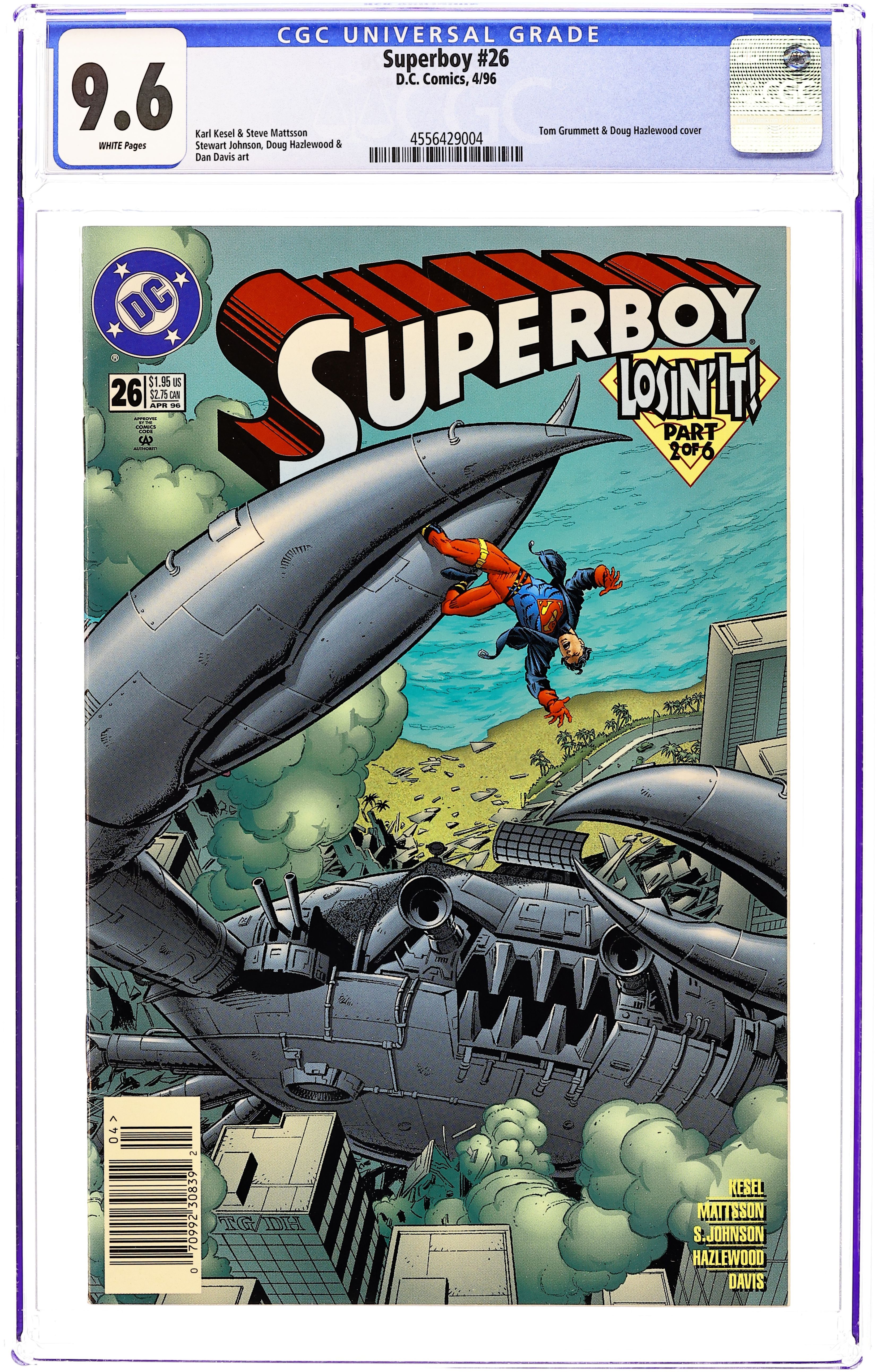 Newsstand Edition. Losin' It: Part 2 of 6. "Strange Bedfellows!" Story by Karl Kesel and Steve Mattsson. Art by Staz Johnson, Doug Hazlewood, and Dan Davis. When a giant crab beast rises out of the sea, the only thing standing in its way is Hawaii's own dynamic duo - Superboy and Knockout. And, who is that plotting and scheming from the shadows? Cover price $1.95.