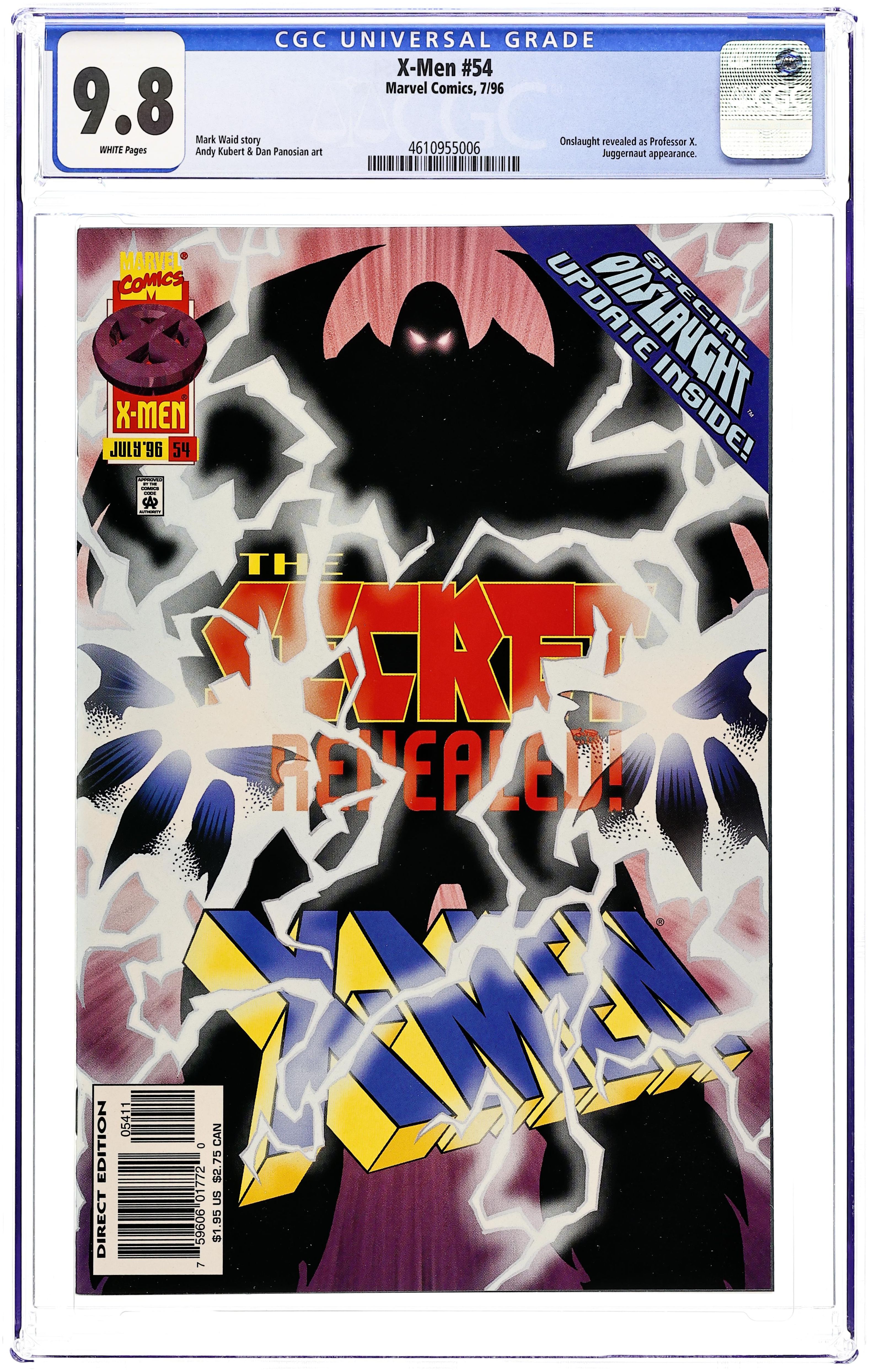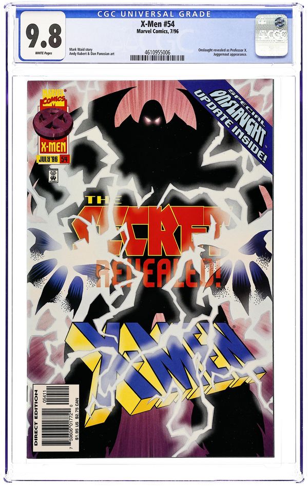 Direct Edition. Cover pencils by Andy Kubert. Inquiring Minds, script by Mark Waid, pencils by Andy Kubert, inks by Dan Panosian; Juggernaut shows up at the mansion so Jean can remove a mental block and help him discover who Onslaught is; Beast escapes from Dark Beast's prison; Onslaught captures Juggernaut and rips the Gem of Cyttorak from his body; Xavier is revealed as Onslaught; Cont. from Uncanny X-Men #334; Cont. in X-Men: Onslaught. 44 pgs. $1.95. Cover price $1.95.
