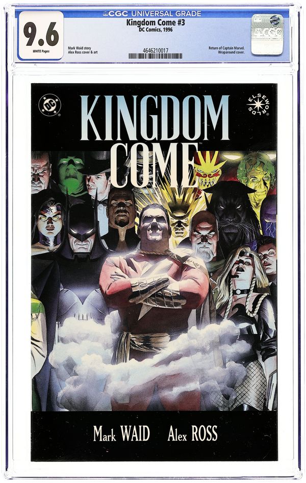 A war is brewing in "Up in the Sky." The Gulag, which is a prison that houses super-powered villains, is on the verge of bursting open at the seams, and the heroes must act. An Elseworlds tale, written by Mark Waid with art by Alex Ross. Direct edition. Cover price $4.95.
