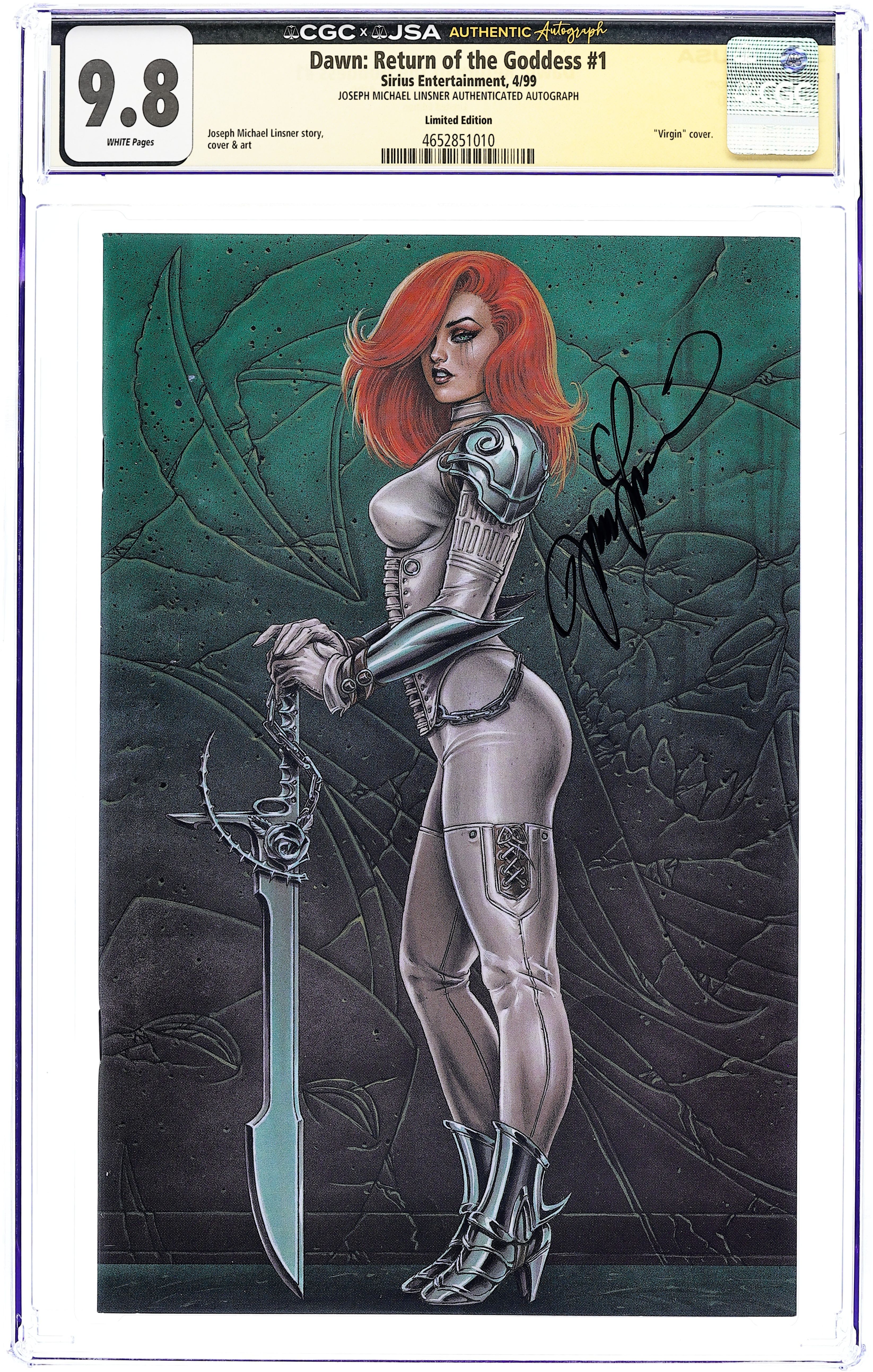 Limited edition cover by Joseph Michael Linsner, signed and numbered and limited to 5000 copies. Includes Certificate of Authenticity. Story and art by Joseph Michael Linsner. Continuing the saga of Linsners Dawn, a goddess of life. After several of her followers are murdered, an angered Dawn travels to the afterlife to take action. 32 pages, Full Color. Mature readers.
