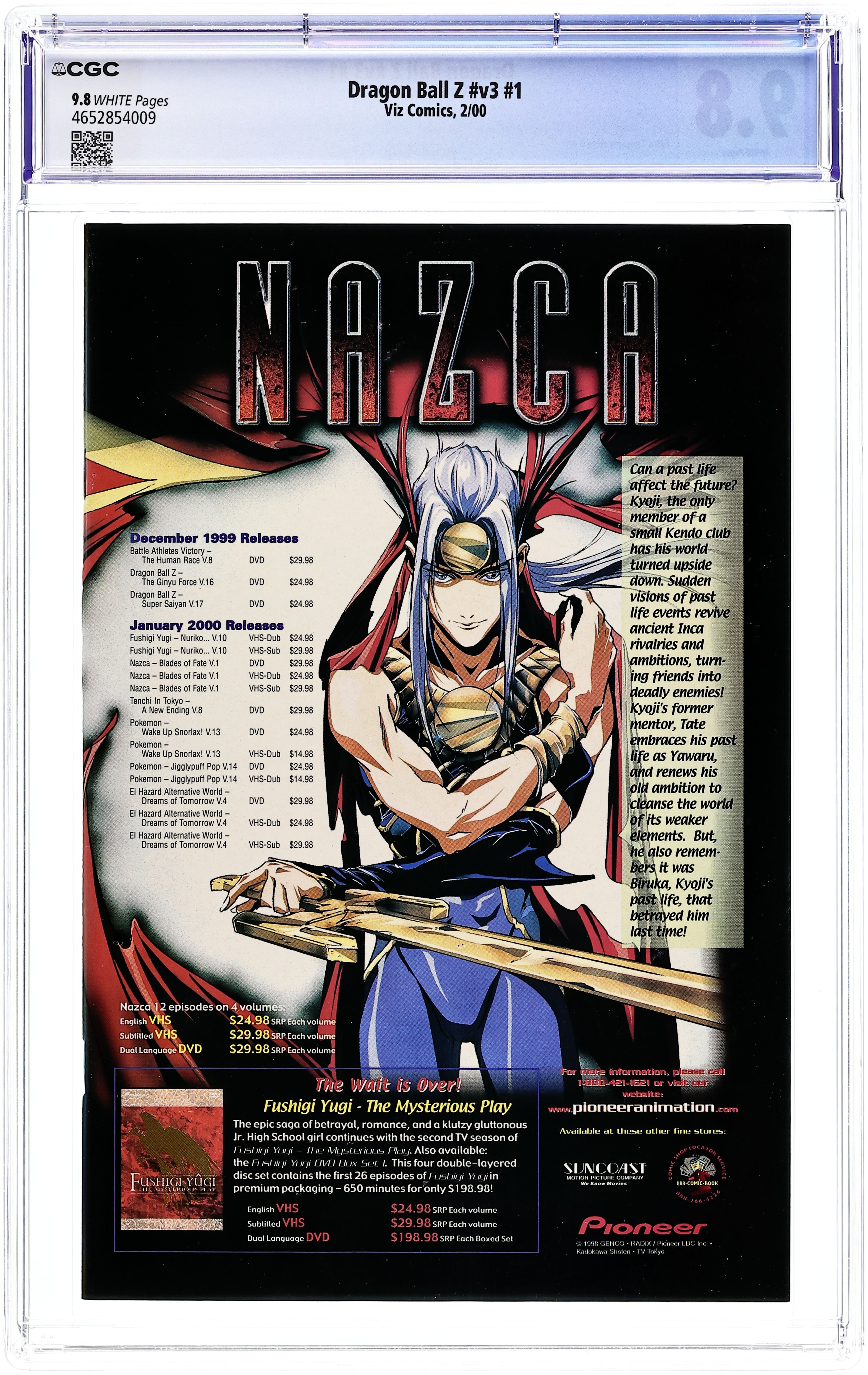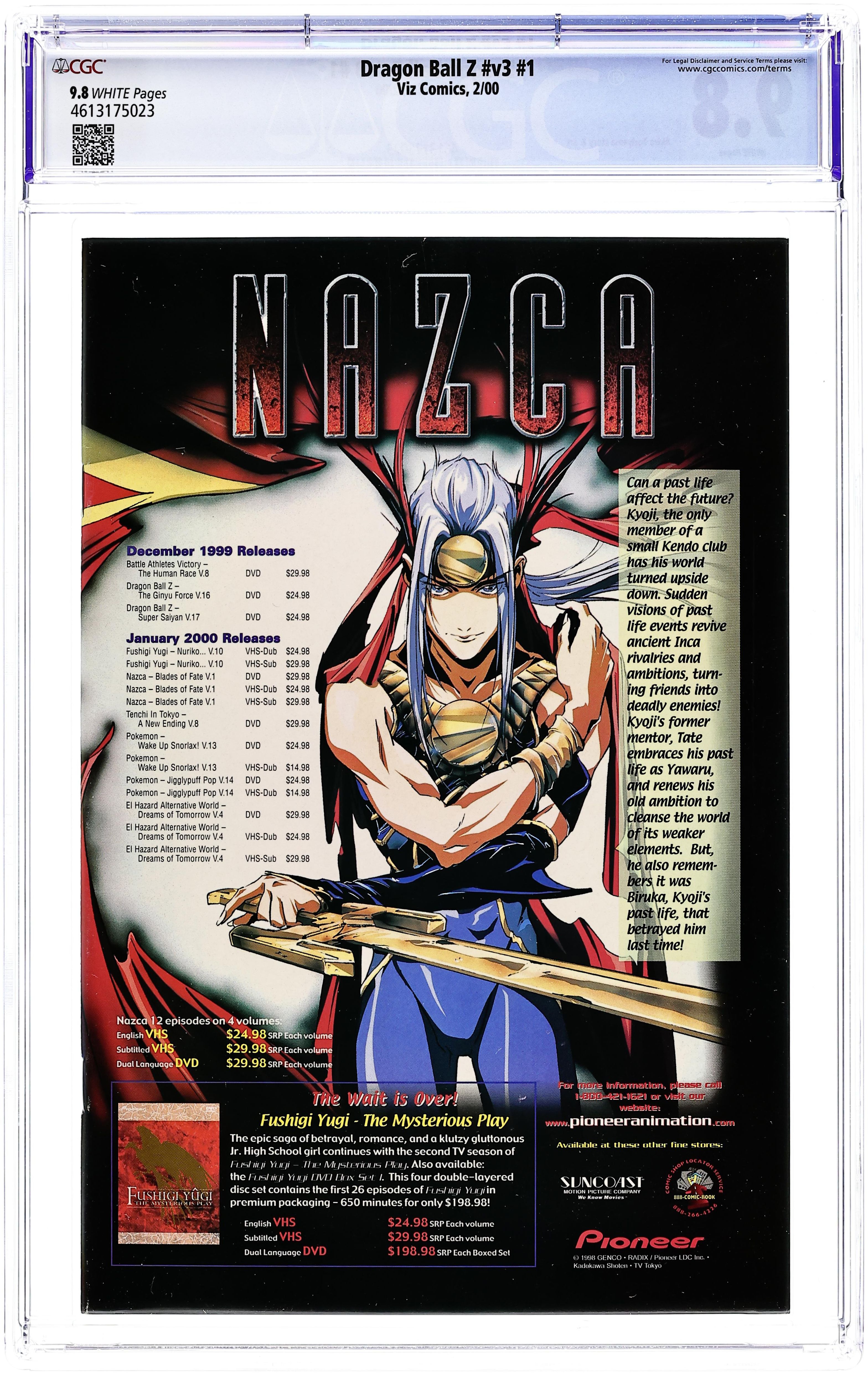 by Akira Toriyama The beginning of the Namek Saga, the second season of Dragon Ball Z! In the aftermath of their titanic battle, both Goku and Vegeta lie half-dead on the blast-cratered earth. As Vegeta painfully retreats into his spaceship, Goku makes the decision to let him go free into outer space ? but will he regret sparing his fiercest enemy, who has vowed to return to get revenge? (CAUT: 3) NOTE: Not available outside North America, Puerto Rico, the U.K., Australia, and New Zealand. b&w, 32pg (1 of 10)" Cover price $2.95.