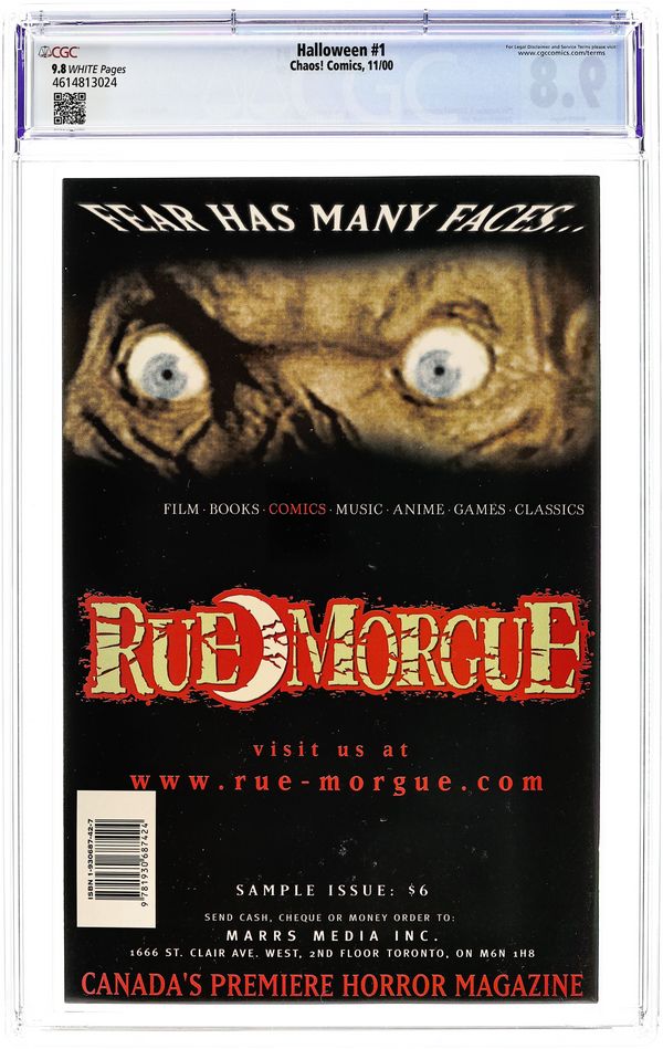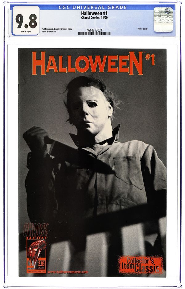 by Nutman, Brewer, & Arnold For the first time ever, the origin of Michael Myers is revealed in Halloween: Behind the Mask! On Halloween night, 1963, 6-year-old Michael Myers slaughtered his sister and was sent to the Smith's Grove Mental Hospital. In 1978 Michael escaped and, adopting the identity of "The Shape" (a.k.a. "The Bogeyman") returned to his hometown of Haddonfield and committed more murders... before mysteriously disappearing. In Halloween: Behind the Mask, Michael returns to Haddonfield to carve out another gruesome chapter in his bloody saga. What happened in Michael's early years in Smith's Grove? Is he a psychotic killer or a supernatural monster? Now you will go behind the mask and learn the dark secret of the Myers' family curse! Photo cover. FC, 32pg Cover price $2.95.