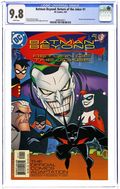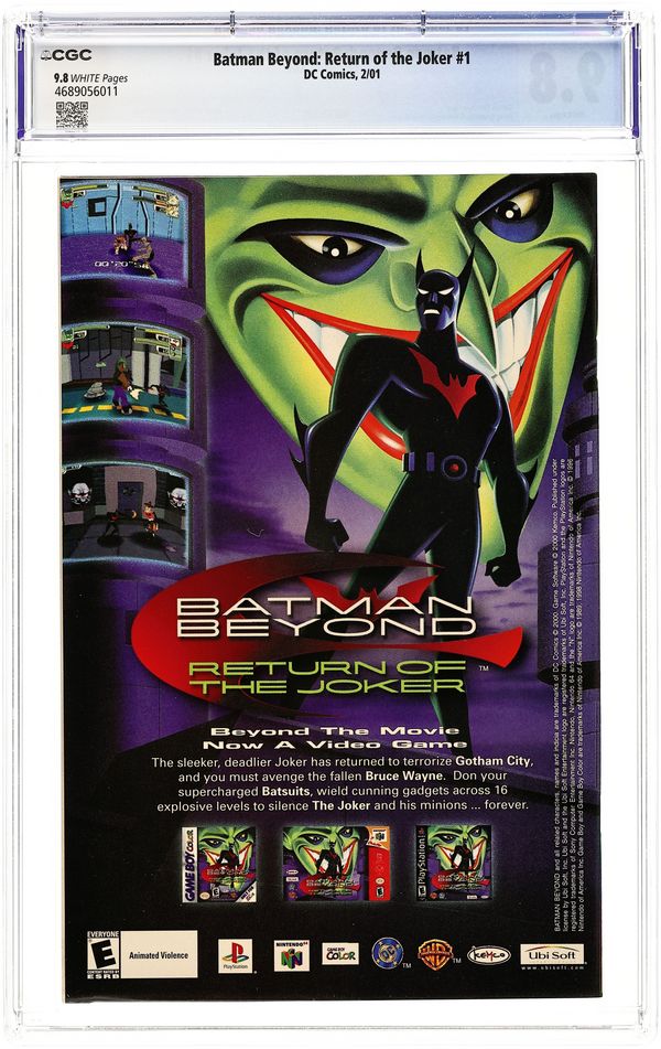 Direct Edition. Story by Darren Vincenzo. Art and Cover by Craig Rousseau. We've all learned that in the future Gotham City of BATMAN BEYOND, young Terry McGinnis has assumed the mantle of the bat. As the new Batman and protector of Gotham, he's had to face many strange new villains and even more bizarre challenges ? gathering a Rogues Gallery of his very own. But nothing could have prepared him for the return of original Batman Bruce Wayne's greatest archenemy ? the psychopathic Joker! And what happens when the Clown Prince of Crime lets loose in a future that seems all new and ready for the taking? Cover price $2.95.