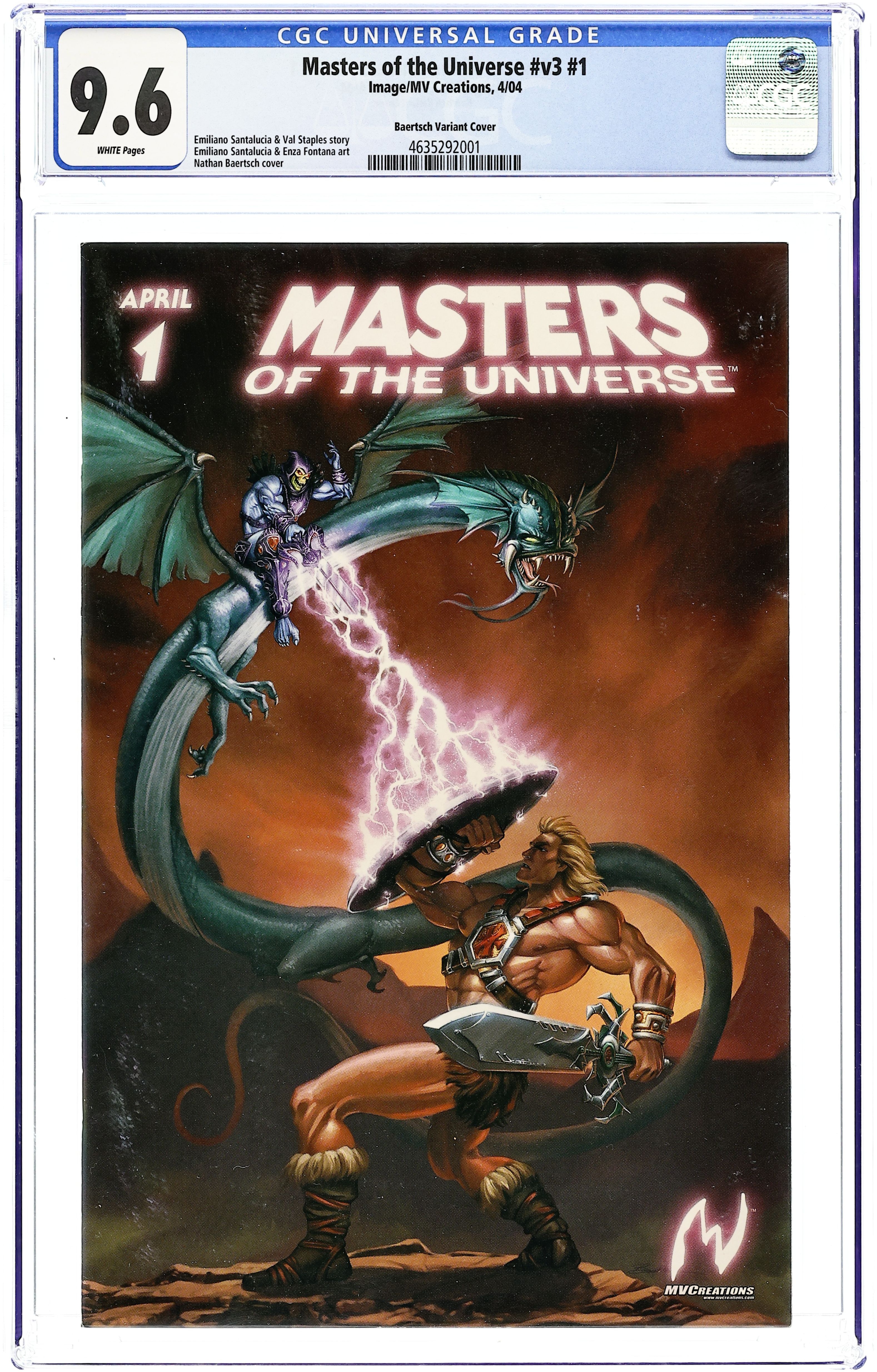 He-Man.Org Exclusive Cover by Nathan Baertsch. By Val Staples and Emiliano Santalucia. With the threat of the Snake Men still at large, the Masters must find a way to bring peace to Eternia once more. But Skeletor has a new quest at hand, which inadvertently paves the way for the greatest threat the Masters have ever faced! All the while, the power of He- Man begins to take its toll on Prince Adam, as the stress from such responsibility eats away at the life he dreamed of living. This is the epic adventure fans have wanted to see ? it's no-holds-barred from here on out as the comic travels down a road of its own design, leading to the answers to questions fans have had for over a decade, and developing the defining story for the Masters of the Universe! Cover by Emiliano Santalucia. (CAUT: 3) NOTE: Not available outside the U.S., Canada, Austria, the U.K., Finland, Germany, the Netherlands, Spain, Sweden, and Switzerland. FC, 32pgs. Cover price $2.95.