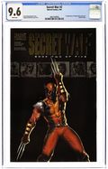 Gold Foil Logo. Written by Brian Michael Bendis. Art and Cover by Gabriele Dell'Otto. The super hero event of the year continues! A year ago, Nick Fury covertly gathered a group of heroes and sent them incognito to Latveria. Once there, he explained that the Latverian government had been funding tech based villains in the U.S. and he has brought the good guys here to bring down that government. In the present, Captain America punches Fury for the events that happened during their Secret War, events that have ended up putting Luke Cage in a coma. Plus: Character bios of the heroes in "S.H.I.E.L.D. Operations Database." Characters in this issue: Nick Fury; Captain America [Steve Rogers]; Spider-Man; Luke Cage; Daredevil; Wolverine; Black Widow; Daisy Johnson; CAMEOS: Mary Jane Parker; Danny Rand [Iron Fist]; Jessica Jones; Grizzly; Killer Shrike. 48 pages, full color. Marvel PSR Cover price $3.99.