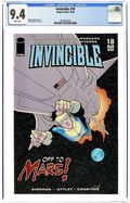 On sale 10.13 $2.95 monthly ongoing series full color, 32 pages written by ROBERT KIRKMAN art by RYAN OTTLEY cover by CORY WALKER & BILL CRABTREE CONCEPT: Mark Grayson is just like everyone else his age, except that his father is the most powerful superhero on the planet. And now he's begun to inherit his father's powers. It all sounds okay at first, but how do you follow in your father's footsteps when you know you will never live up to his standards? THIS ISSUE: Invincible is enlisted to accompany the first manned space flight to Mars. What secrets could the red planet hold? Why would someone anticipate a problem necessitating the inclusion of the most powerful superhero on the planet? Invincible is about to find out, and the answer will astound you! Cover price $2.95.