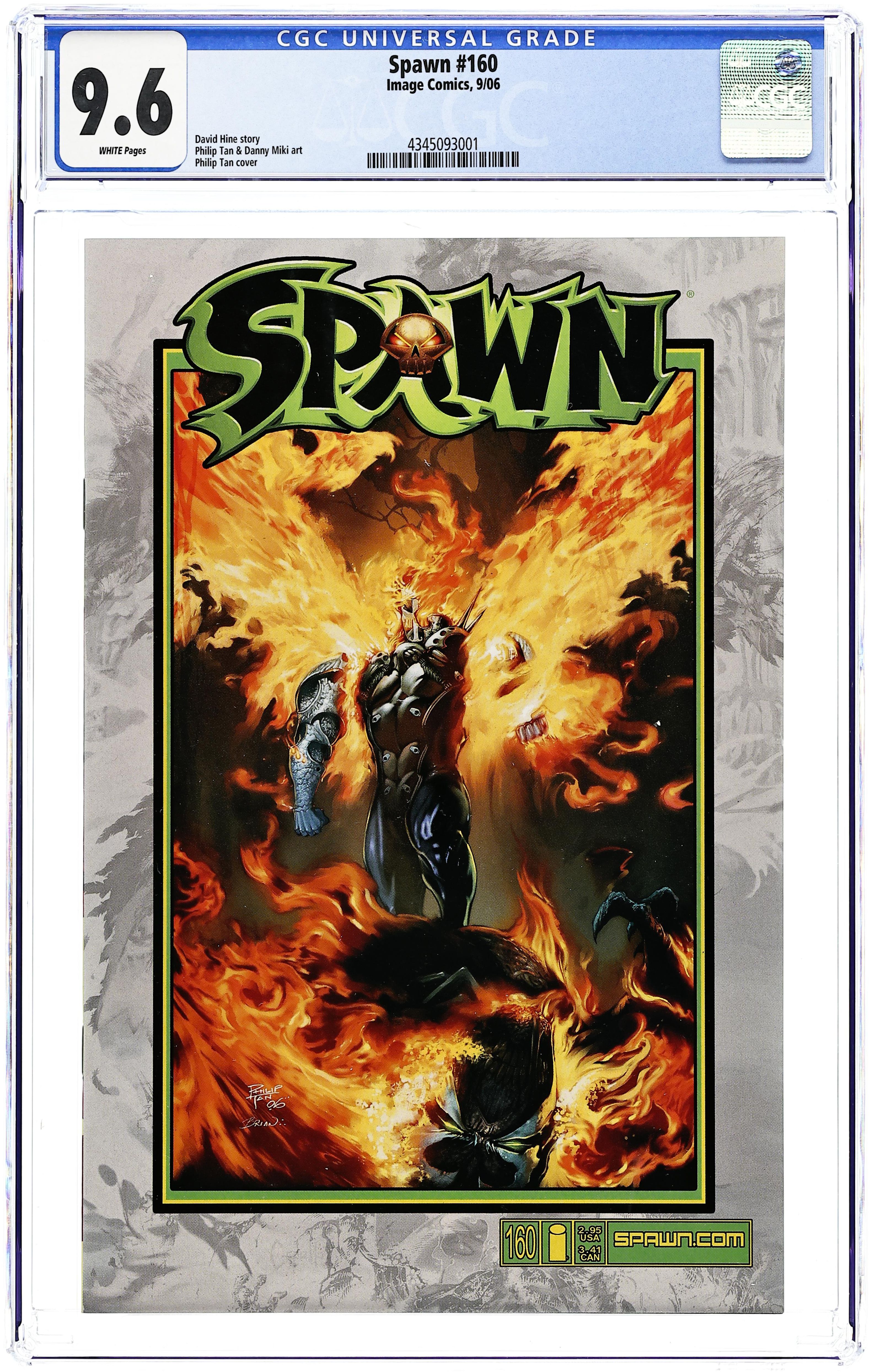 Written by DAVID HINE. Art by PHILIP TAN & DANNY MIKI. Cover by PHILIP TAN & BRIAN HABERLIN. Spawn faces his greatest challenge: The Disciple. Armageddon is approaching fast and with Heaven's new recruits lining up for battle, Hell is going to need to swell its ranks too. And where is it going to find the cruelest, most ruthless, kick-ass SOB's on the face of the Earth? Burn, Hollywood, BURN! ? 32 pg ? FC ? Cover price $2.95.