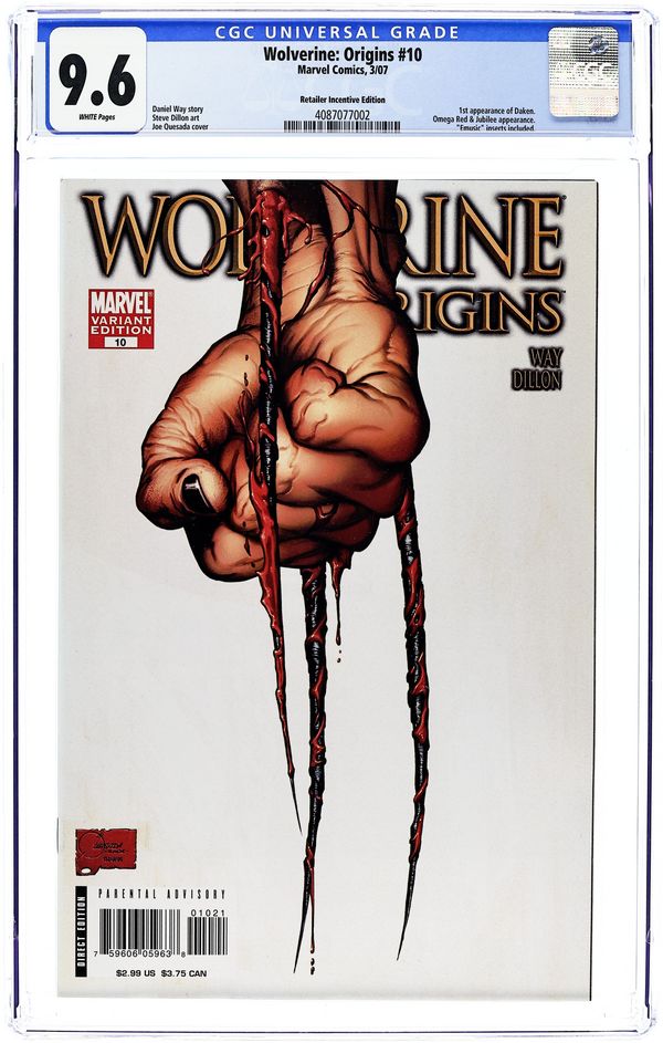 Joe Quesada Variant Cover. Written by DANIEL WAY Penciled by STEVE DILLON Cover by JOE QUESADA 50/50 Variant by ARTHUR SUYDAM It all ends-and it all begins-in this issue, featuring both the death of a beloved Marvel character and the debut appearance of a new one: the son of Wolverine! 32 PGS./PARENTAL ADVISORY Cover price $2.99.