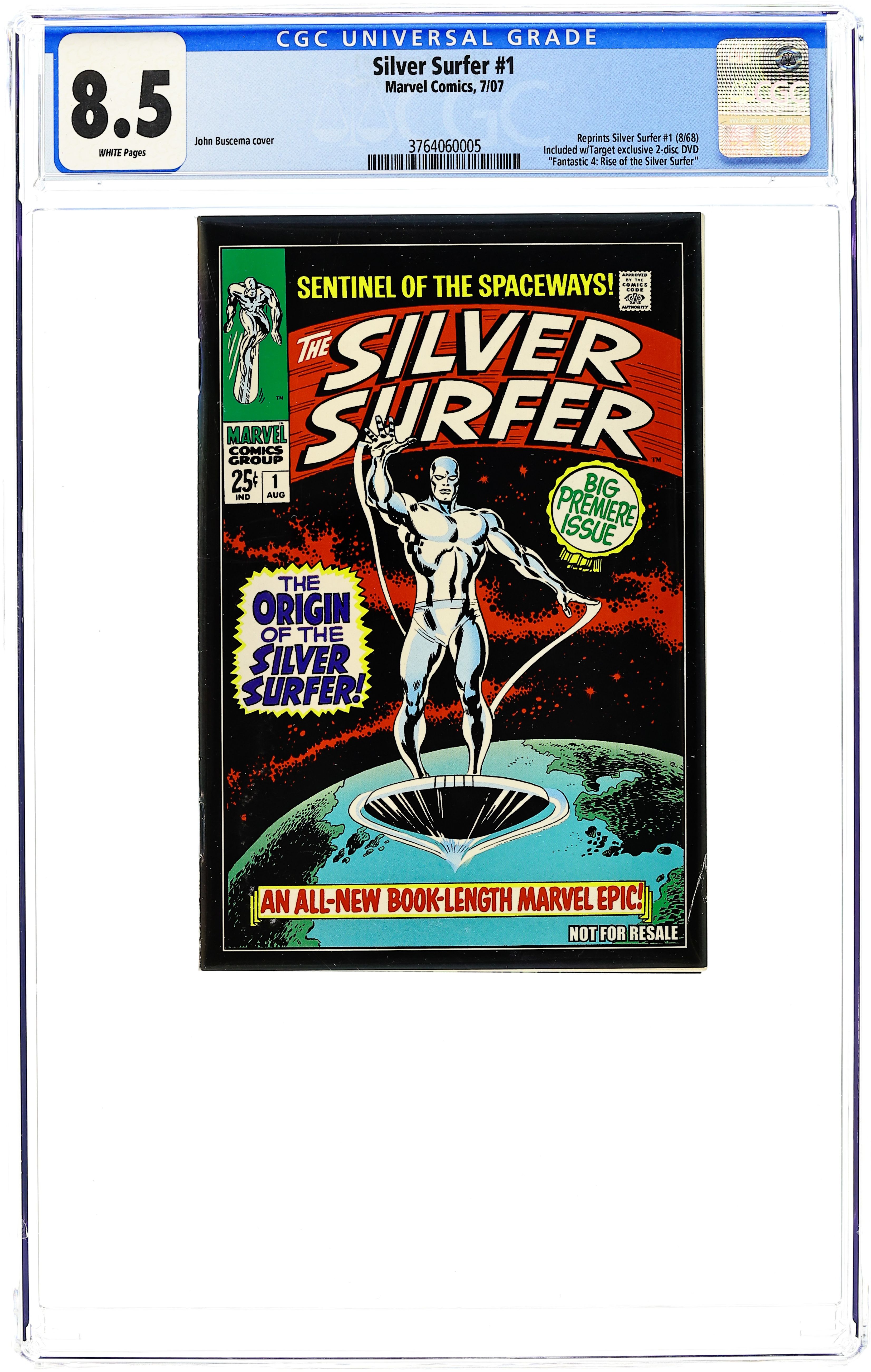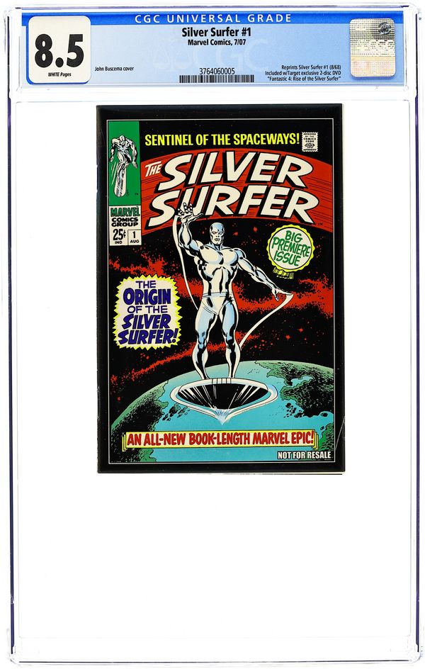 2007 min-comic reprint of Silver Surfer #1 from 1968, minus the back-up story. Originally came packaged in the Target Exclusive Edition of the Fantastic Four Rise of the Silver Surfer DVD. "The Origin of the Silver Surfer!" Cameos by the Incredible Hulk, Doctor Doom, and the Fantastic Four. Written by Stan Lee. Art and cover by John Buscema and Joe Sinnott. Many years ago, in order to prevent the total annihilation of his civilization and homeworld, Norrin Radd bargained with the Devourer of Worlds. Imbued with the Power Cosmic, he became the Silver Surfer and Herald of Galactus. However, on the fateful day he arrived on Earth, for love of humanity, he betrayed his master, and thus was cursed to never traverse the space-ways again. This is his story.