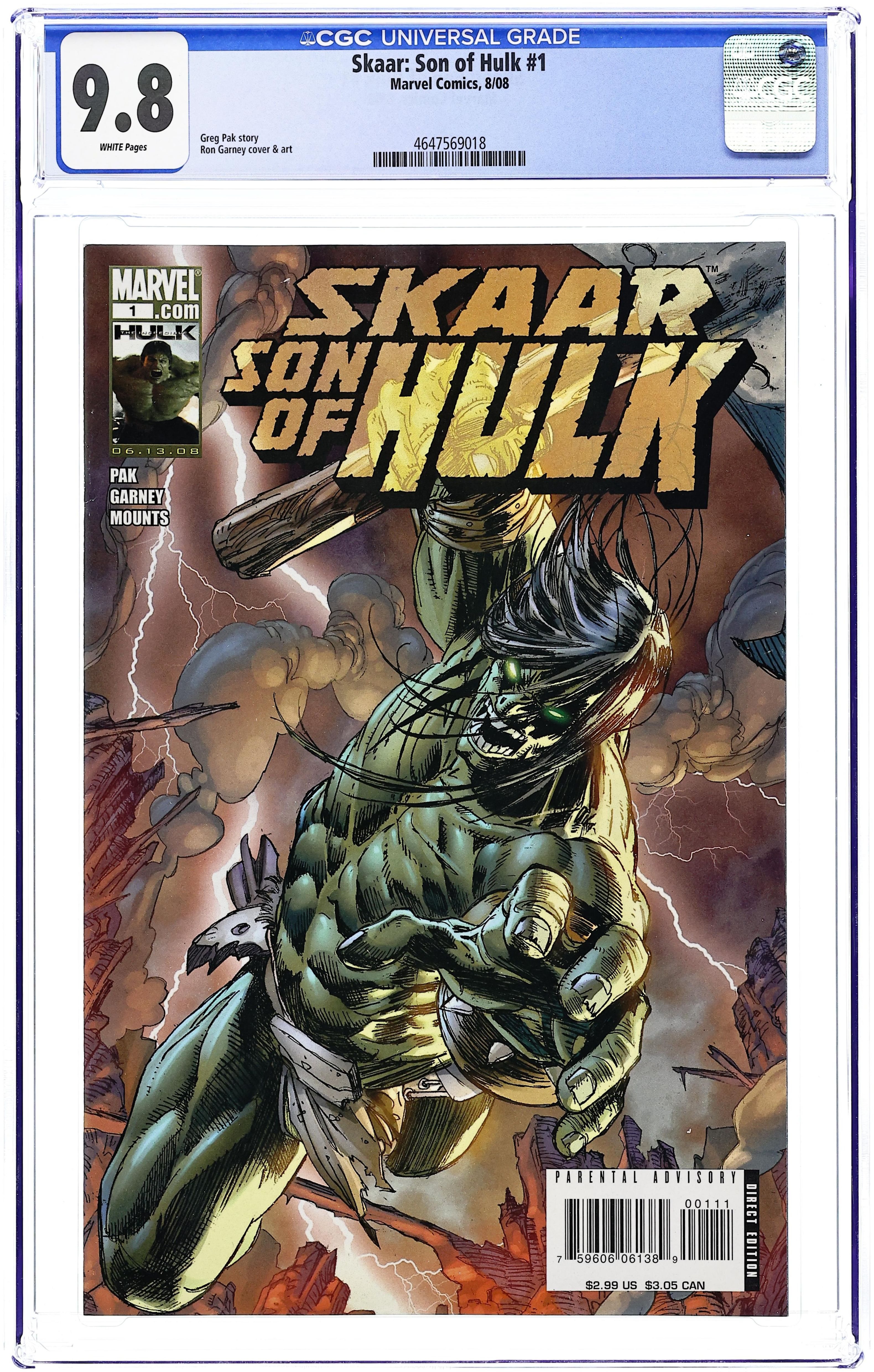 Cover by RON GARNEY. Written by GREG PAK Pencils by RON GARNEY. Born in fire. Raised by monsters. Destined to smash. On an alien planet shattered by war, no one is stronger than Skaar, the savage Son of Hulk. But as a Fillian warlord, an Imperial princess, and a mysterious Earthman spread chaos through the wastelands, will Skaar save the puny survivors -- or eat them? Another epic fever dream from Greg Pak, writer of 'Planet Hulk' and 'World War Hulk' -- featuring the return of fan-favorite Hulk artist Ron Garney! 32 PGS./Rated T+ ...$2.99 Cover price $2.99.