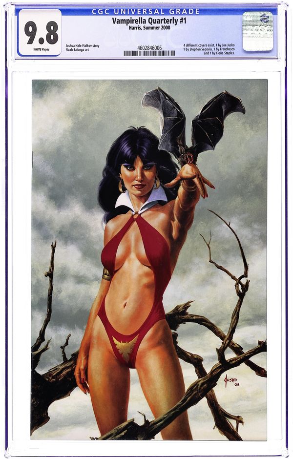 Virgin Cover by Joe Jusko. by Fialkov, Salonga, Goodwin & Gonzalez Joshua Fialkov wraps-up his landmark run on Vampirella with his most startling tale yet! Vampirella finally makes her move on her sister Draculina while the life of Pendragon hangs in the balance. Has Vampi finally met her match? Also includes another classic Vampirella story recolored and remastered for a new audience! Covers by Stephen Segovia (Wolverine) and the legendary Ray Lago! Cover price $4.99.